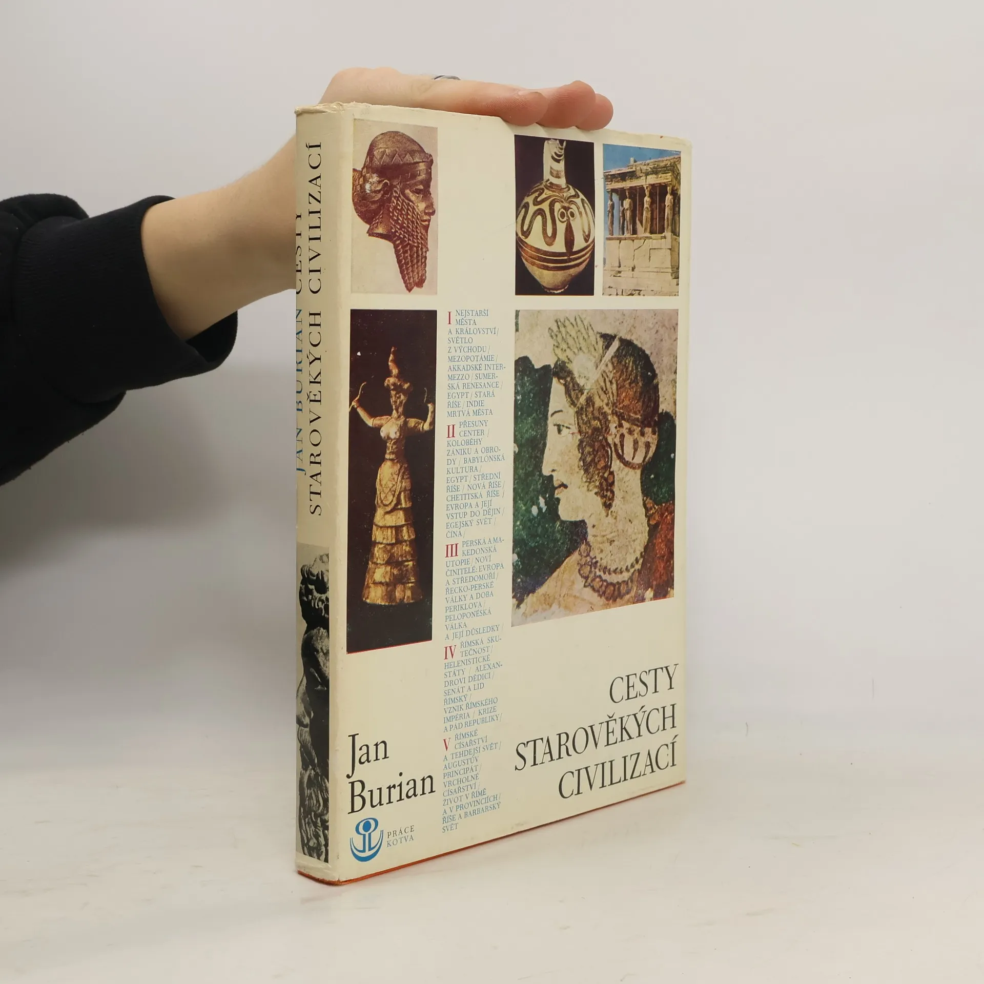 Dr. Jan Burian, CSc.: Cesty starověkých civilizací. Kniha předkládá nejzávažnější fakta ze starověkých dějin - od jejich počátků až po zánik říše západořímské a formování "barbarských států" ve střední Evropě. Dočtete se nejen o nejstarších městech a královstvích na světě, o raných kulturách v Asii, Africe i na evropské půdě, o obdivuhodném díle Sumerů a archaickém egyptském státu s prvními faraóny, ale i o indické civilizaci v povodí Indu a Gangy a čínské kultuře, o bájné Tróji, o starobabylónské říši a říši Chetitů. Najdete zde samozřejmě také líčení počátků řecké kultury i její konec, počátky Říma i jeho pád. Autor oživuje výklad citacemi z pramenů, zejména z literárních děl - a celé jeho dílo, rozvržené do pěti kapitol, v nichž plasticky rozvíjí velkolepý obraz nejdávnější historie lidstva, je bohatě ilustrováno četnými pérovkami a mapkami, černobílými i barevnými fotografiemi.