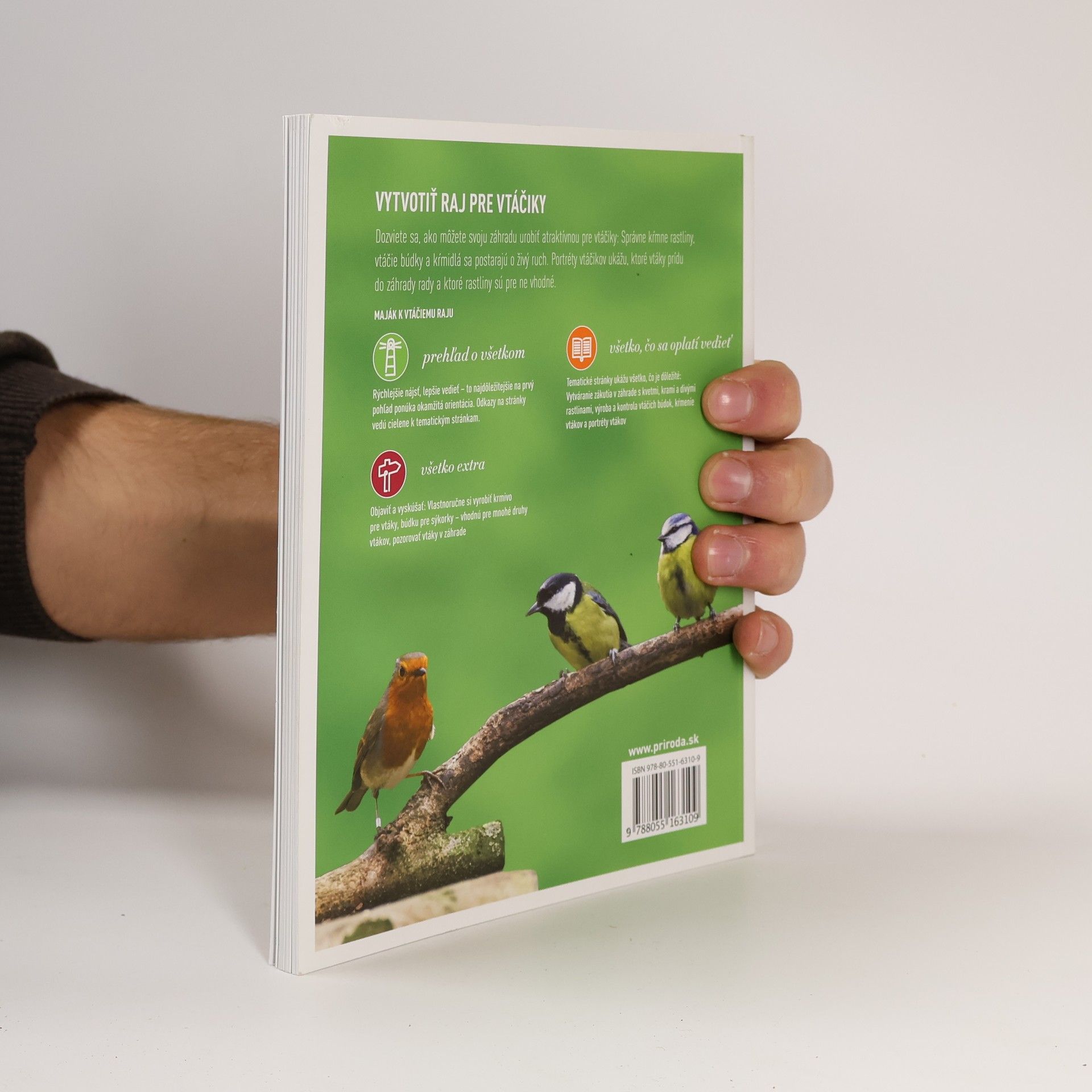 Tvorenie-Vysádzanie-Pozorovanie S touto knihou dokážete vytvoriť vo svojej záhrade raj pre vtáky. Nájdete v nej inšpiráciu a nápady, ktoré vám pomôžu vybrať správne rastliny a vytvoriť v záhrade atraktívne zákutia s kvetmi, kríkmi a divými rastlinami. Naučíte sa vlastnoručne vyrobiť vtáčie búdky či kŕmidlá, ktoré sa postarajú o živý ruch vo vašej záhrade, a dozviete sa, ako vtáčiky správne kŕmiť, chrániť pred domácimi zvieratami, ale aj pozorovať.