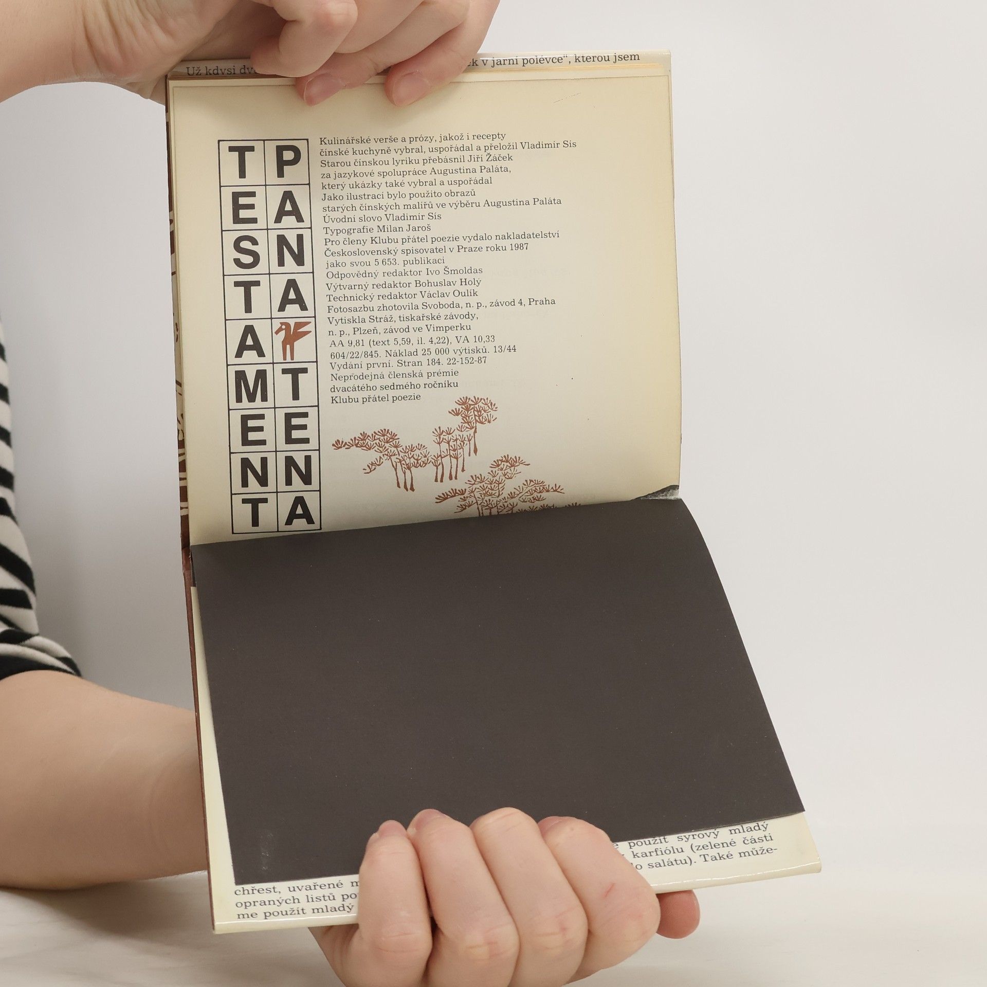 Knížka kulinářských veršů a vyprávěnek, posbíraných za dlouhé cesty do Tibetu, doplněné říkankami a výběrem z básní starých čínských mistrů o jídle a pití, jakož i recepty na přípravu exotických pochoutek.