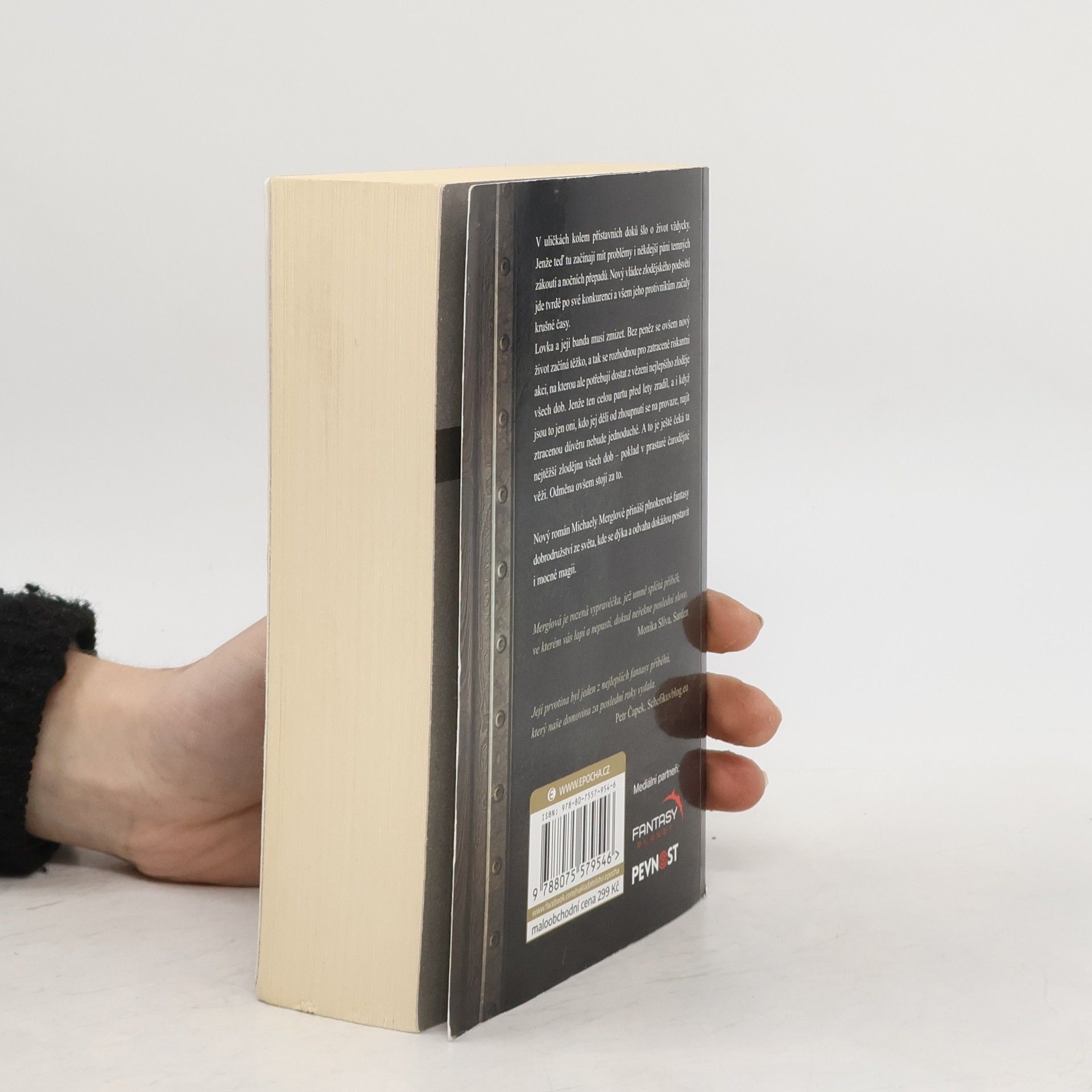 V uličkách kolem přístavních doků šlo o život vždycky. Jenže teď tu začínají mít problémy i někdejší páni temných zákoutí a nočních přepadů. Nový vládce zlodějského podsvětí jde tvrdě po své konkurenci a všem jeho protivníkům začaly krušné časy. Lovka a její banda musí zmizet. Bez peněz se ale nový život začíná těžko, a tak se rozhodnou pro zatraceně riskantní akci, na kterou ale potřebují dostat z vězení nejlepšího zloděje všech dob. Jenže ten celou partu před lety zradil, a i když jsou to jen oni, kdo jej dělí od zhoupnutí se na provaze, najít ztracenou důvěru nebude jednoduché. A to je ještě čeká ta nejtěžší zlodějna všech dob – poklad v prastaré čarodějné věži. Odměna ovšem stojí za to. Nový román Michaely Merglové přináší plnokrevné fantasy dobrodružství ze světa, kde se dýka a odvaha dokážou postavit i mocné magii.