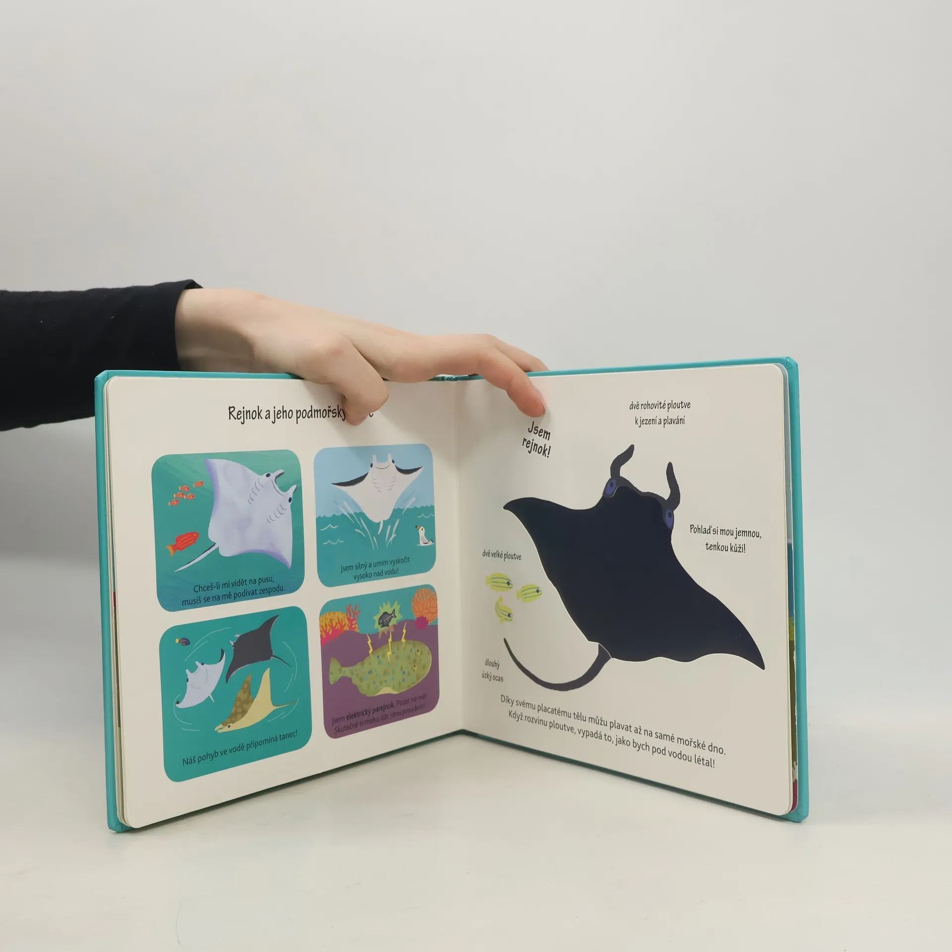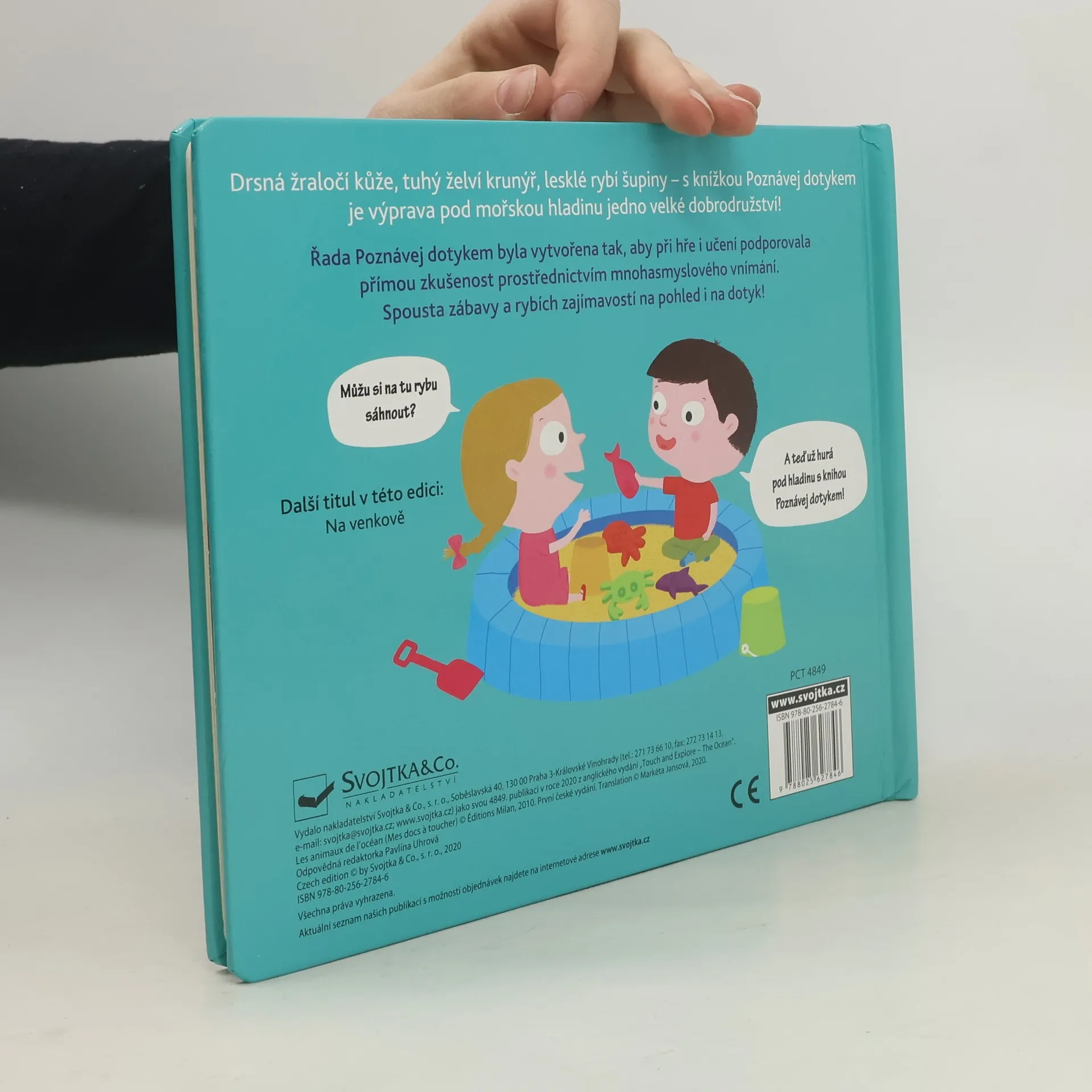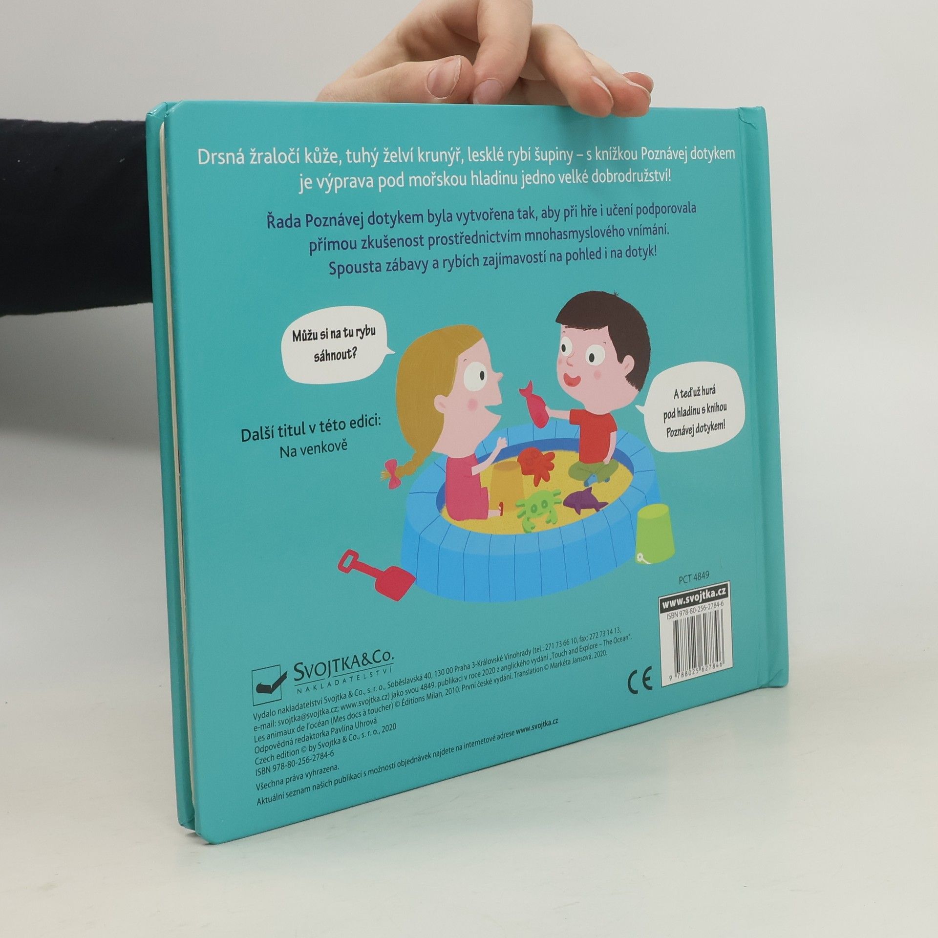 Milují vaše děti poznávání zvířat nejen očima a chtějí si na vše ideálně samy sáhnout? Právě pro ně jsou určeny knížky Poznávej dotykem. V této se podívají pod hladinu oceánu, kde se ukrývají roztodivní tvorové. Povrchy jejich těl jsou různé. Želva má tvrdý krunýř, ryba pravidelné šupiny a delfín zase měkkou kůži. A kdo se to ukrývá pod odklápěcím okénkem? Není to chobotnice? Děti musejí při čtení dobře hledat mnohá podmořská zvířata se totiž umějí skvěle maskovat! Nechte děti zapojit více smyslů a doslova se dotknout světa pod hladinou.