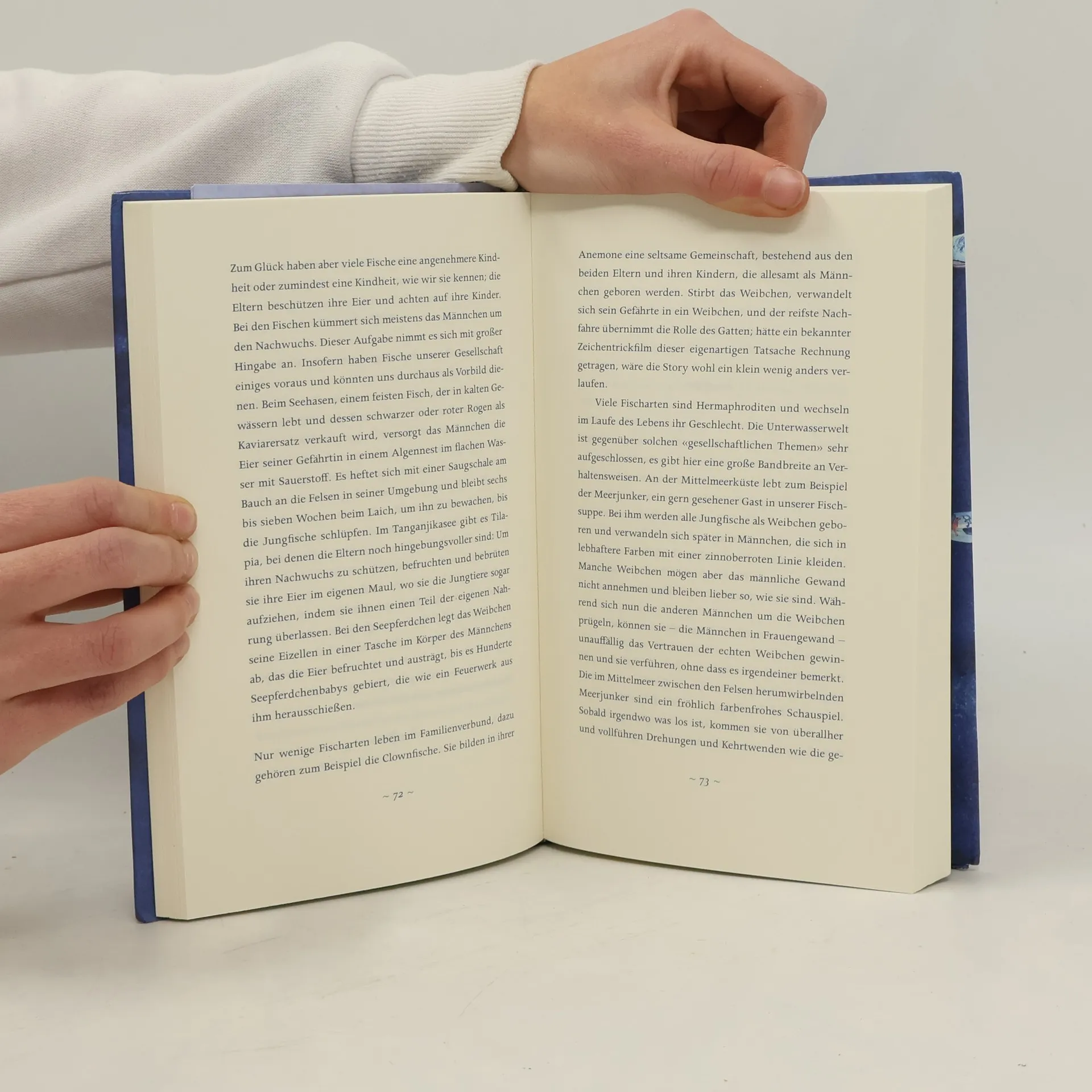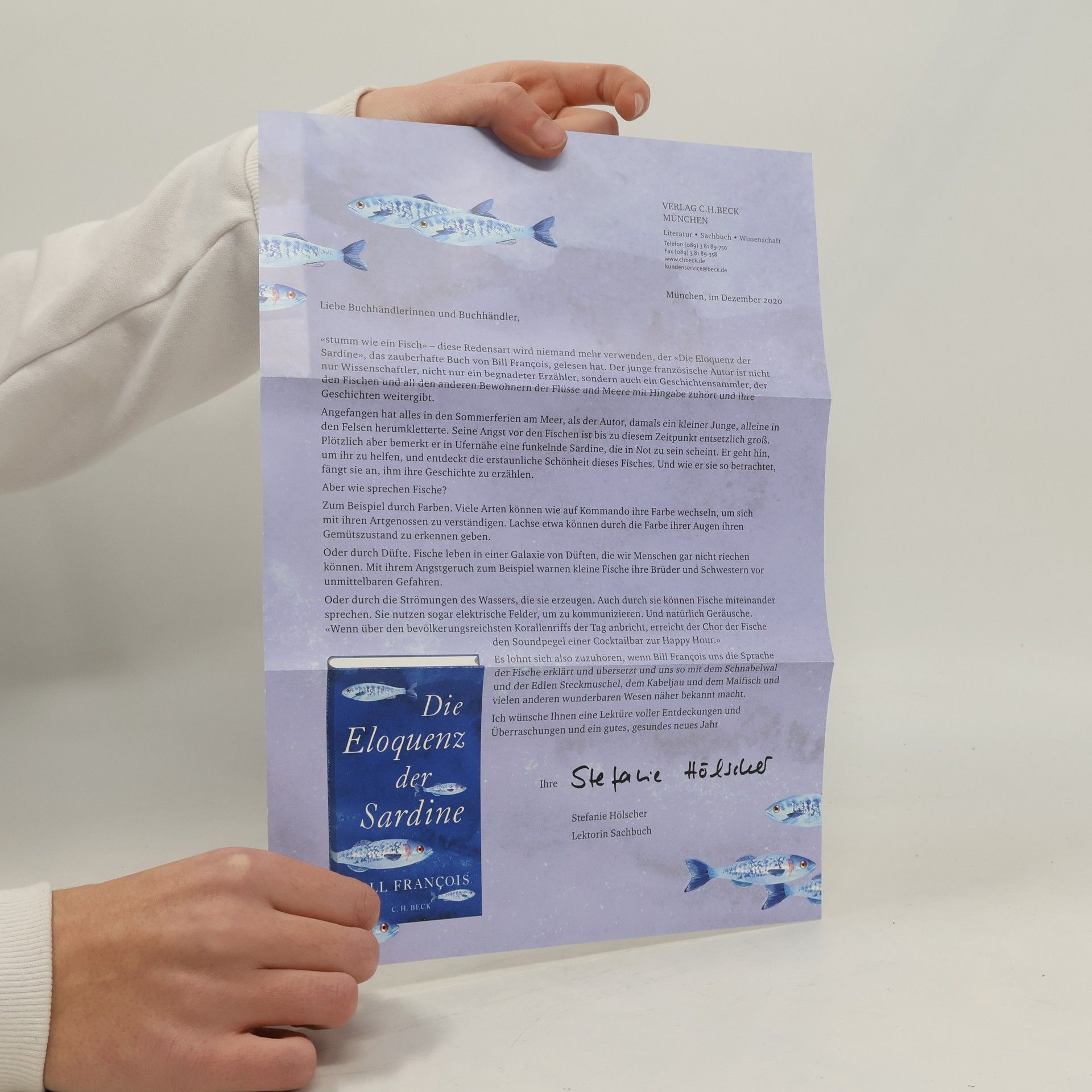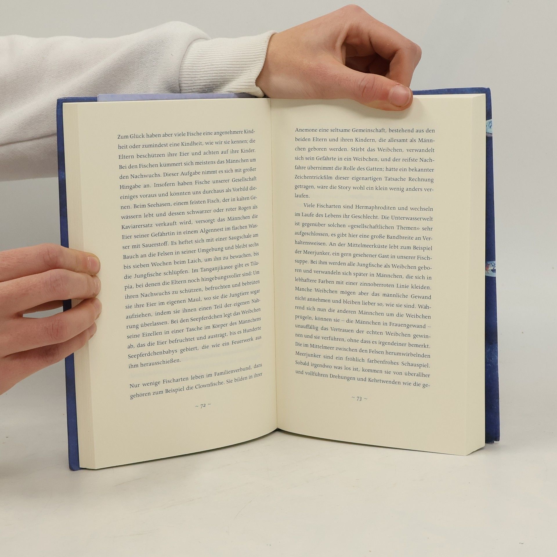 «Die einzigen Tiere, denen ich auf gar keinen Fall begegnen wollte, waren Fische.» Eine Sardine, strahlend und zerbrechlich, befreite Bill François einst als Kind von seiner Angst vor den Fischen und dem offenen Meer. «Sie bat mich, sie zu begleiten, und hob an, mir ihre Geschichte zu erzählen.» Seither ist er nie wieder vollständig auf festen Boden zurückgekehrt. Seither lauscht er den Wundergeschichten der blauen Welt, die er uns in seinem betörenden Buch weitergibt. Die Meeresbewohner sind keineswegs stumm. Ihre Sprache ist im Gegenteil so vielfältig wie unsere Sinne. Bill François lässt uns die unterseeischen Klänge hören,wo sich das Echo der Eisberge mit den Gesängen der Wale und dem Chor der Fische mischt. Er lehrt uns die Sprache der Farben und Düfte unter Wasser und erzählt vom Atlantischen Lachs, der noch in den Gewässern Grönlands den bretonischen Bach riecht, in dem er geboren wurde. Mit einer Gang von Streetfishern steigt er in den Bauch von Paris hinab, um dessen aquatische Bewohner zu treffen. Ein begnadeter Erzähler, lässt uns Bill François am gesellschaftlichen Leben der Meereswesen teilhaben, berichtet von der Kindheit der Fische, von der Fähigkeit der Buckelwale, ihr Wissen weiterzugeben, und vom Geschlechtswechsel bei den Meerjunkern. Während die Meereswelt durch den Menschen zahllosen Gefahren ausgesetzt ist, vermittelt er uns das Glück, das ein freundschaftlicher Austausch mit ihr uns finden lässt.