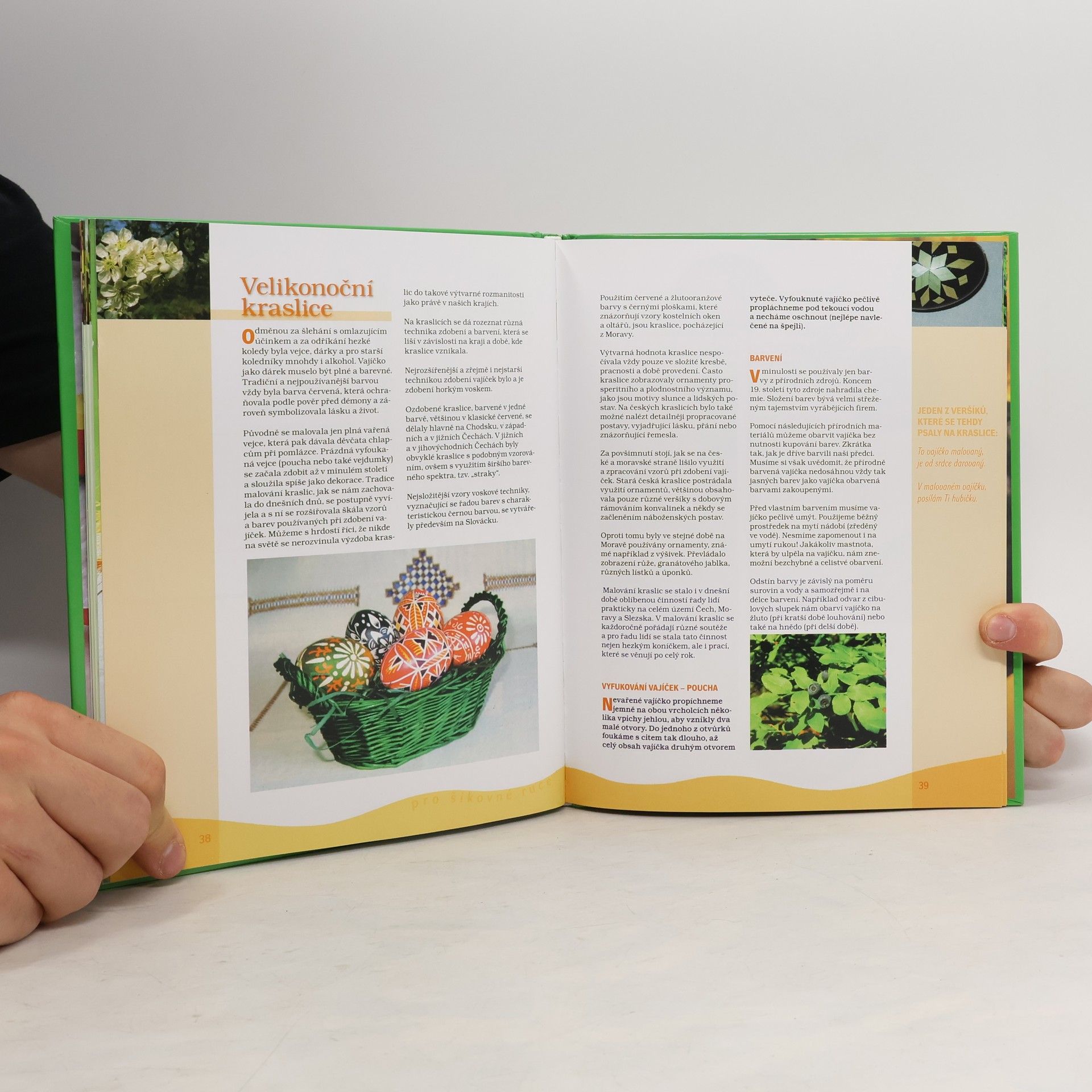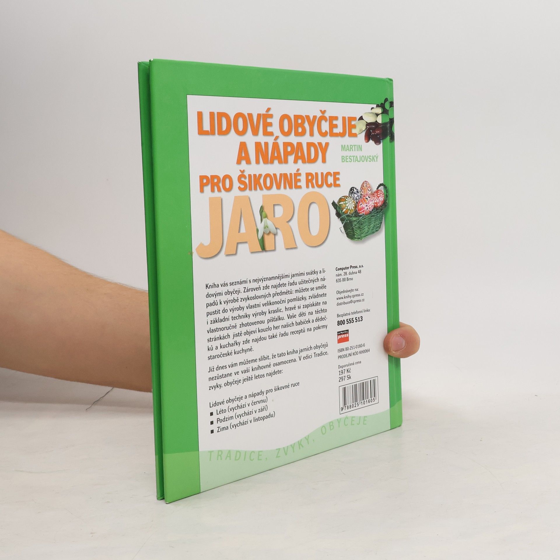 Kniha vás seznámí s nejvýznamnějšími jarními svátky a lidovými obyčeji. Zároveň zde najdete řadu užitečných nápadů k výrobě zvykoslovných předmětů: můžete se směle pustit do výroby vlastní velikonoční pomlázky, zvládnete i základní techniky výroby kraslic, hravě si zapískáte na vlastnoručně zhotovenou píšťalku. Vaše děti na těchto stránkách jistě objeví kouzlo her našich babiček a dědečků a kuchařky zde najdou také řadu receptů na pokrmy staročeské kuchyně.