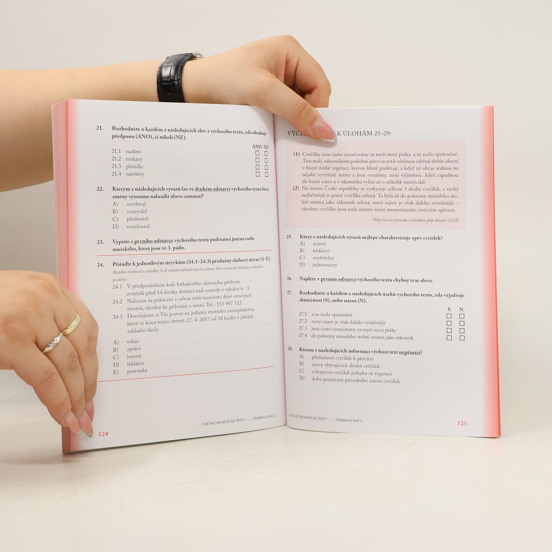 Tato kniha umožní žákům 9. ročníků a dalším uchazečům o studium v maturitních oborech cílenou přípravu na úspěšné zvládnutí didaktického testu, který je součástí jednotných přijímacích zkoušek na střední školy. Kniha obsahuje rozsáhlou sbírku úloh, rozdělených podle jednotlivých oblastí učiva, a 3 cvičné didaktické testy. V závěru knihy je pak uveden klíč správných odpovědí ke všem úlohám.