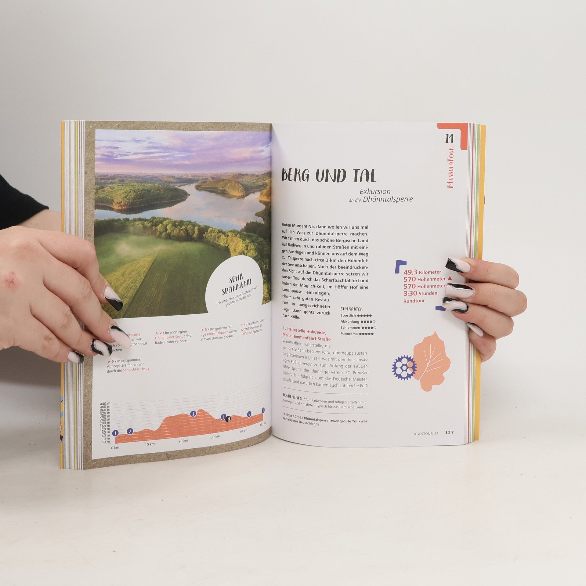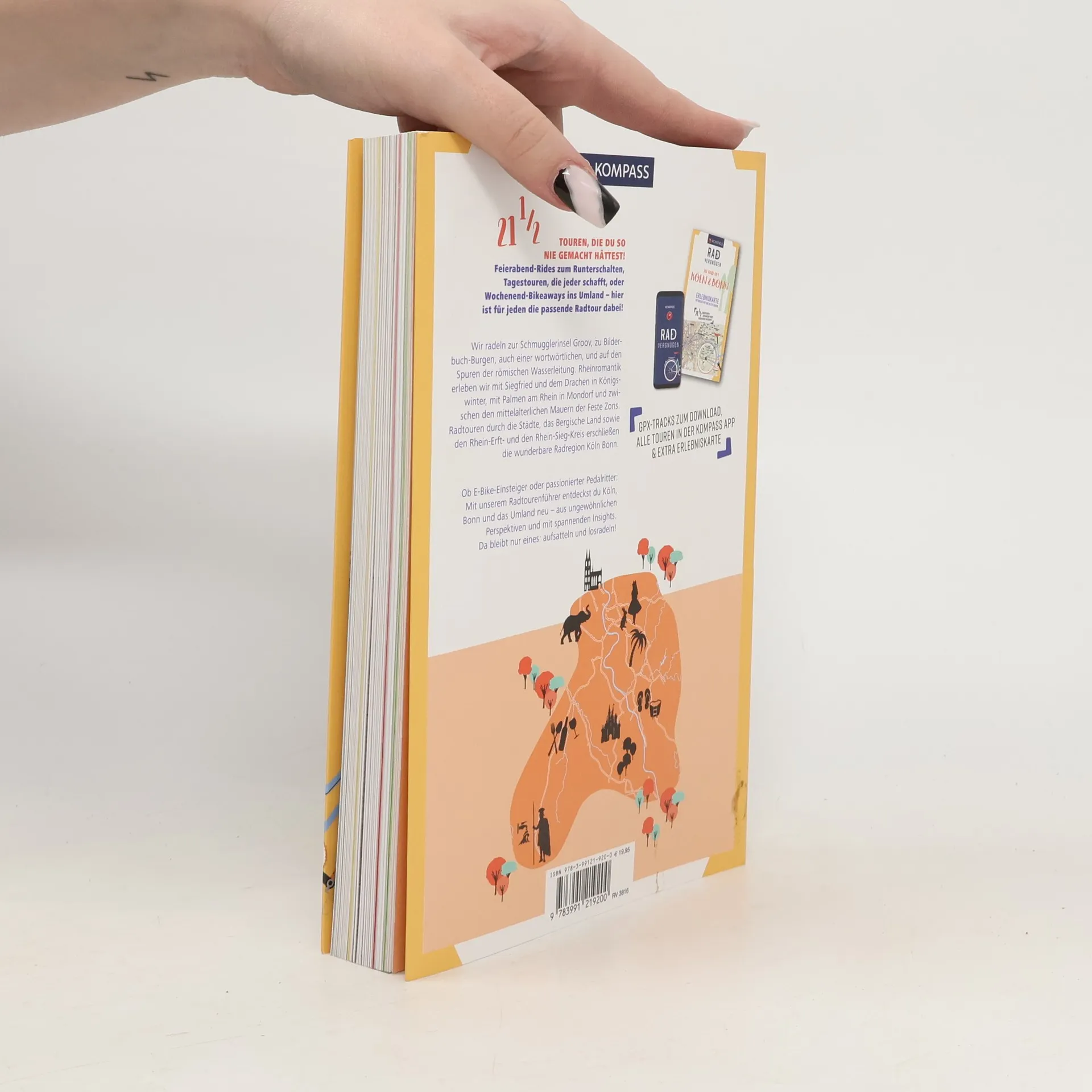 21einhalb Radtouren, die du so nie gemacht hättest! Tagestouren, die jeder schafft, Feierabendrunden zum Runterschalten und Wochenendausflüge ins Umland – hier ist für alle die passende Tour dabei. Wir radeln zur Schmugglerinsel Groov, zu Bilderbuch-Burgen, auch einer wortwörtlichen, und auf den Spuren der römischen Wasserleitung. Rheinromantik erleben wir mit Siegfried und dem Drachen in Königswinter, mit Palmen am Rhein in Mondorf und zwischen den mittelalterlichen Mauern der Feste Zons. Radtouren durch die Städte, das Bergische Land sowie den Rhein-Erft- und den Rhein-Sieg-Kreis erschließen die wunderbare Radregion Köln Bonn. Bei der Tourenauswahl helfen Highlight-Listen für Kinder, E-Biker, Schlemmer und Ruhesuchende. Dank Eventkalender planst du deine Route immer zur besten Zeit und mit Radcheck und Packliste bist du bestens gerüstet fürs Heimat- oder Urlaubsabenteuer. Jede Tour wird ergänzt um Einkehrtipps, Anreiseinfos, Höhenprofil und Tourenkarte. Der Radtourenguide mit Extra-Tourenkarte, App und GPX-Download verbindet Inspiration auf dem Sofa mit einfacher Navigation vor Ort. Ob E-Bike-Einsteiger oder passionierter Pedalritter: Mit unserem Radtourenführer entdeckst du Köln und Bonn und ihre Umgebung neu. Da bleibt nur eines: aufsatteln und losradeln!