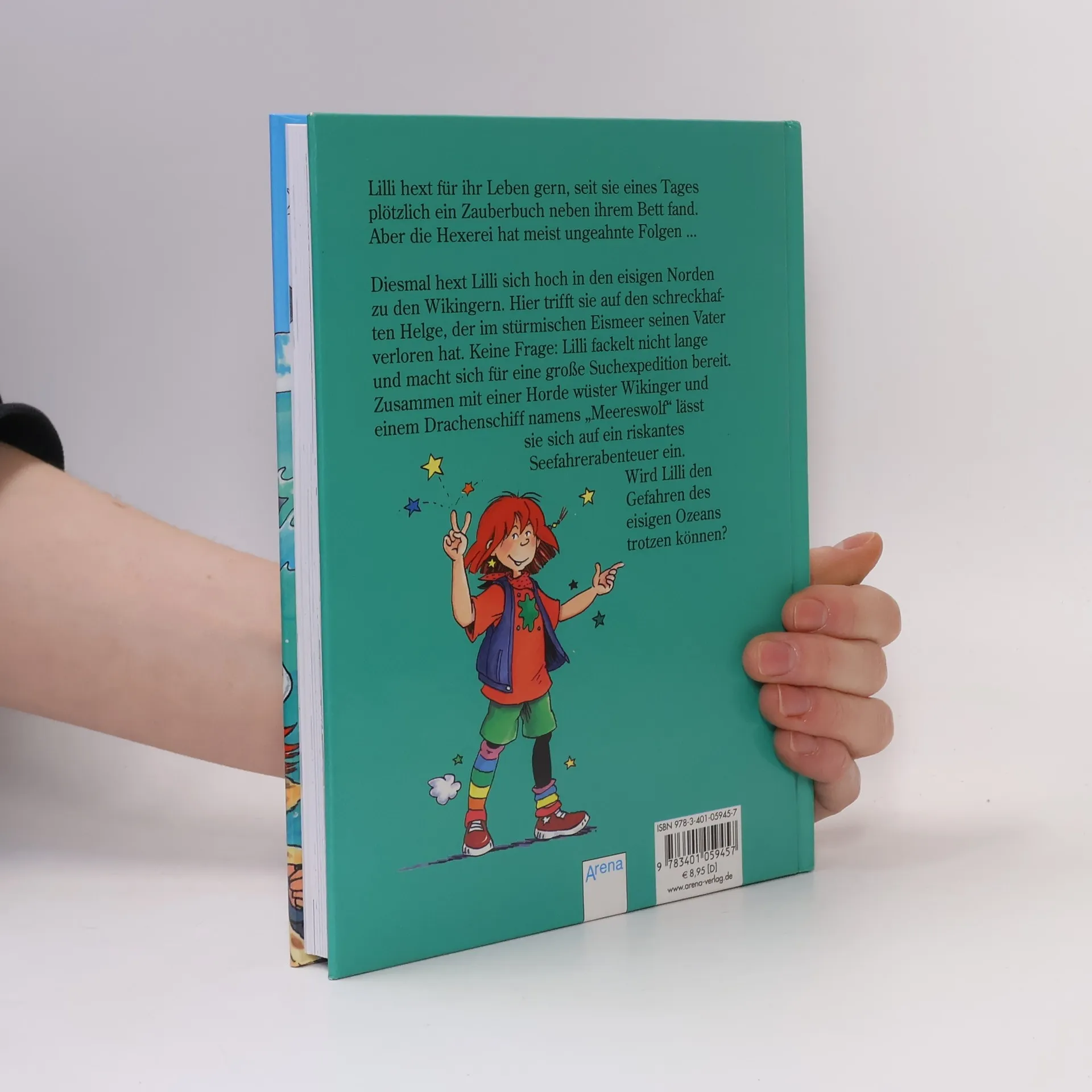 Lilli hext für ihr Leben gern, seit sie eines Tages plötzlich ein Zauberbuch neben ihrem Bett fand. Diesmal hext Lilli sich hoch in den eisigen Norden zu den Wikingern. Hier trifft sie auf den schreckhaften Helge, der im stürmichen Eismeer seinen Vater verloren hat. Keine Frage: Lilli fackelt nicht lange und macht sich für eine große Suchexpedition bereit. Zusammen mit einer Horde wüster Wikinger und einem Drachenschiff namens "Meereswolf" lässt sie sich auf ein riskantes Seefahrerabenteuer ein. Wird Lilli den Gefahren des eisigen Ozeans trotzen können?