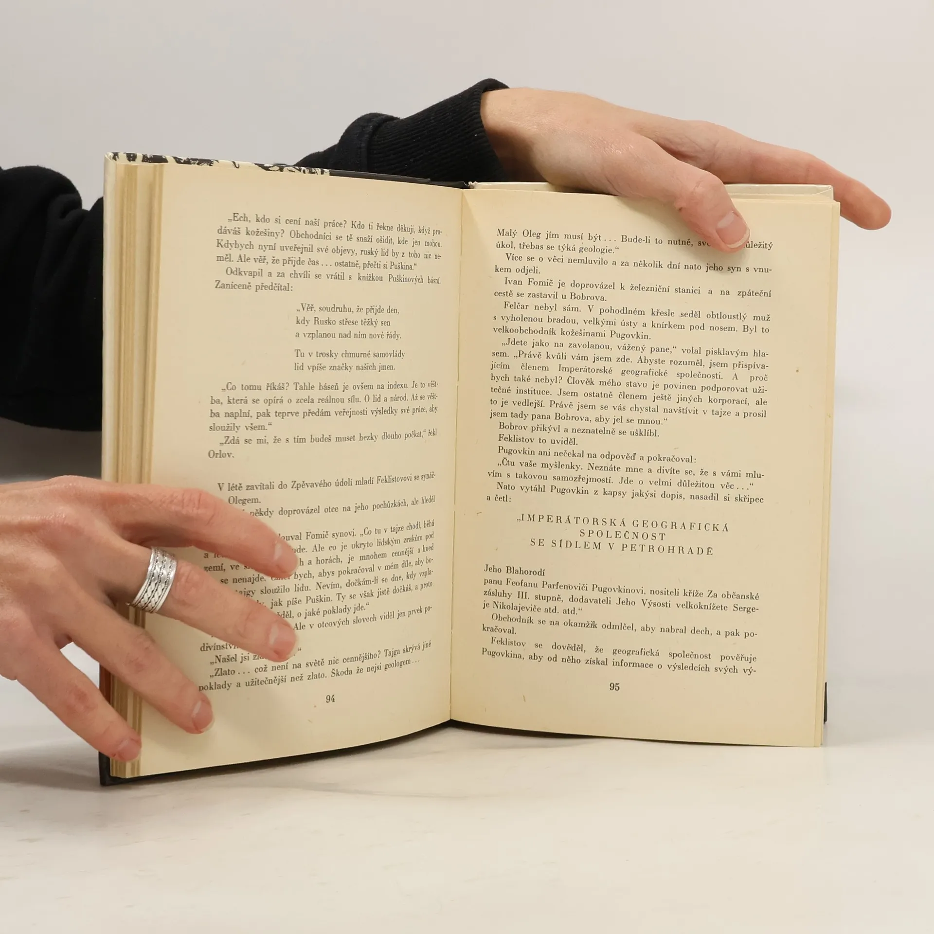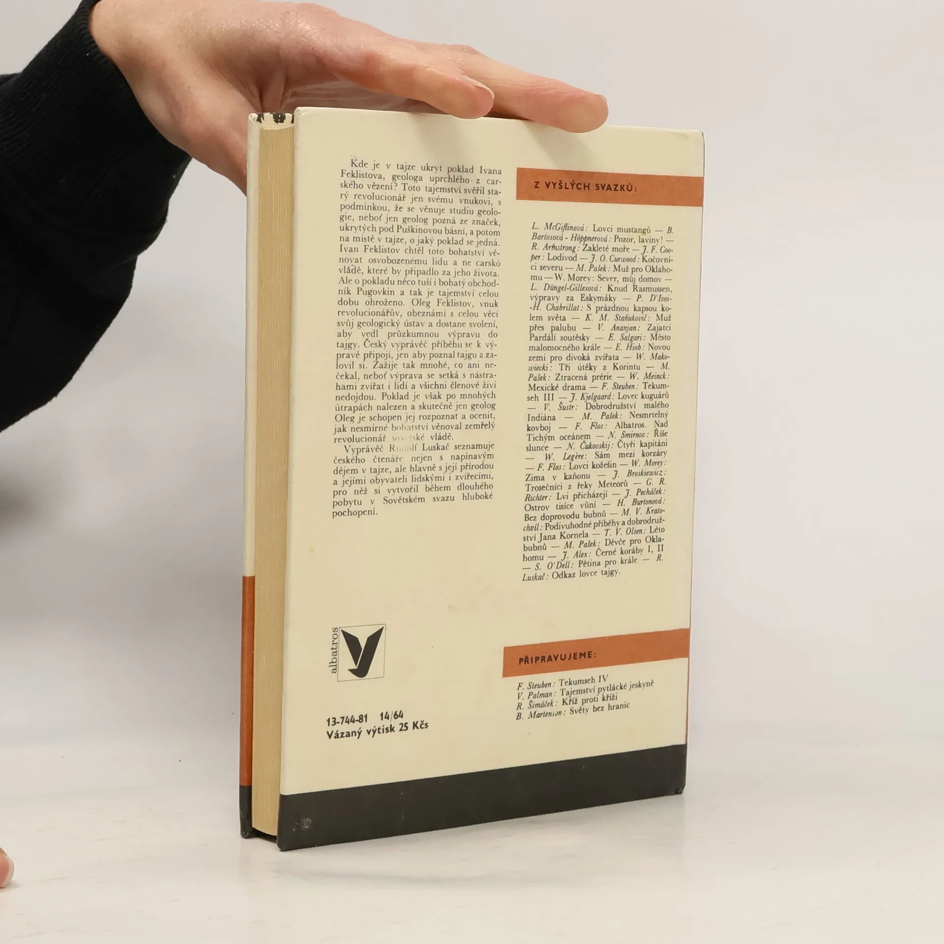 Kde je v tajze ukryt poklad Ivana Feklistova, geologa uprchlého z carského vězení? Toto tajemství svěřil starý revolucionář jen svému vnukovi, s podmínkou, že se věnuje studiu geologie, neboť jen geolog pozná ze značek, ukrytých pod Puškinovou básní, a potom na místě v tajze, o jaký poklad se jedná. Ivan Feklistov chtěl toto bohatství věnovat osvobozenému lidu a ne carské vládě, které by připadlo za jeho života. Ale o pokladu něco tuší i bohatý obchodník Pugovkin a tak je tajemství celou dobu ohroženo. Oleg Feklistov, vnuk revolucionářův, obeznámí s celou věcí svůj geologický ústav a dostane svolení, aby vedl průzkumnou výpravu do tajgy. Český vyprávěč příběhu se k výpravě připojí, jen aby poznal tajgu a zalovil si. Zažije tak mnohé, co ani nečekal, neboť výprava se setká s nástrahami zvířat i lidí a všichni členové živi nedojdou. Poklad je však po mnohých útrapách nalezen a skutečně jen geolog Oleg je schopen jej rozpoznat a ocenit, jak nesmírné bohatství věnoval zemřelý revolucionář sovětské vládě.Vyprávěč Rudolf Luskač seznamuje českého čtenáře nejen s napínavým dějem v tajze, ale hlavně s její přírodou a jejími obyvateli lidskými i zvířecími, pro něž si vytvořil během dlouhého pobytu v Sovětském svazu hluboké pochopení.V literární (zkrácené) úpravě Jiřího Sedláčka.
