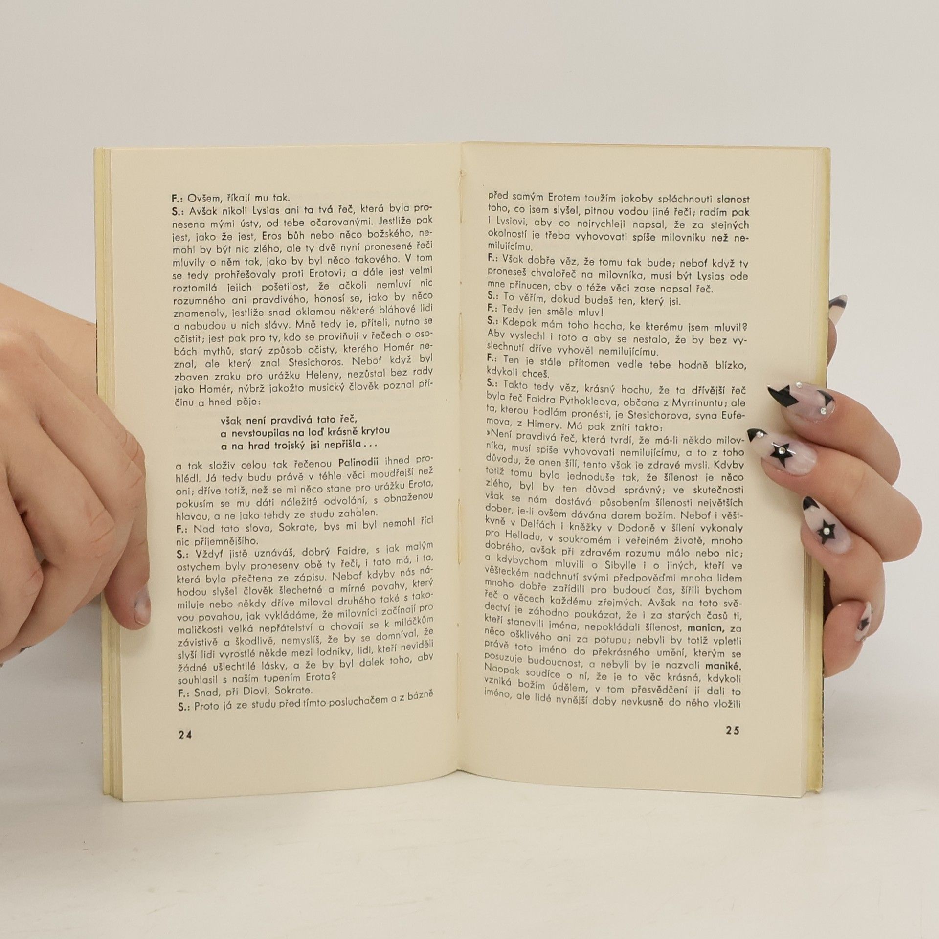 Jeden z nejproslulejších dialogů velkého řeckého filosofa řeší v první části ústy Sokratovými souvislost mezi láskou a filosofickou touhou po nejvyšším poznání, v druhé části pak podává výklad o rétorice a významu spisovatelské činnosti. Dílo dodnes cenné svým básnickým vzletem avytříbeností formy.