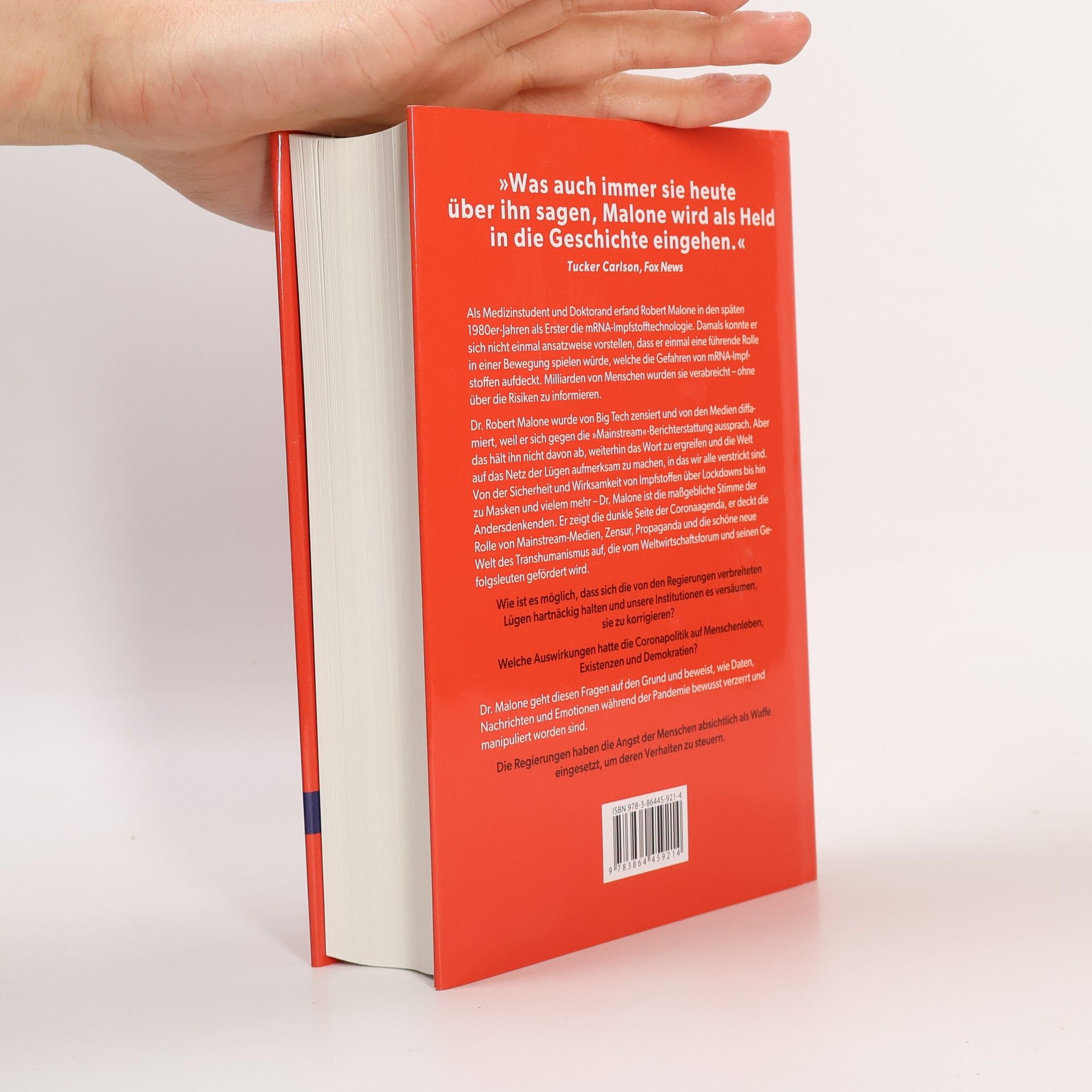 Dr. Robert Malone wurde von Big Tech zensiert und von den Medien diffamiert, weil er sich gegen die »Mainstream«-Berichterstattung aussprach. Aber das hält ihn nicht davon ab, weiterhin das Wort zu ergreifen und die Welt auf das Netz der Lügen aufmerksam zu machen, in das wir alle verstrickt sind. Von der Sicherheit und Wirksamkeit von Impfstoffen über Lockdowns bis hin zu Masken und vielem mehr - Dr. Malone ist die maßgebliche Stimme der Andersdenkenden. Er zeigt die dunkle Seite der Coronaagenda, er deckt die Rolle von Mainstream-Medien, Zensur, Propaganda und die schöne neue Welt des Transhumanismus auf, die vom Weltwirtschaftsforum und seinen Gefolgsleuten gefördert wird.Wie ist es möglich, dass sich die von den Regierungen verbreiteten Lügen hartnäckig halten und unsere Institutionen es versäumen, sie zu korrigieren?Welche Auswirkungen hatte die Coronapolitik auf Menschenleben, Existenzen und Demokratien?Dr. Malone geht diesen Fragen auf den Grund und beweist, wie Daten, Nachrichten und Emotionen während der Pandemie bewusst verzerrt und manipuliert worden sind.Die Regierungen haben die Angst der Menschen absichtlich als Waffe eingesetzt, um deren Verhalten zu steuern.Die Medien verleumdeten jeden, der sich gegen die offizielle Darstellung wehrte und zu Wort meldete.