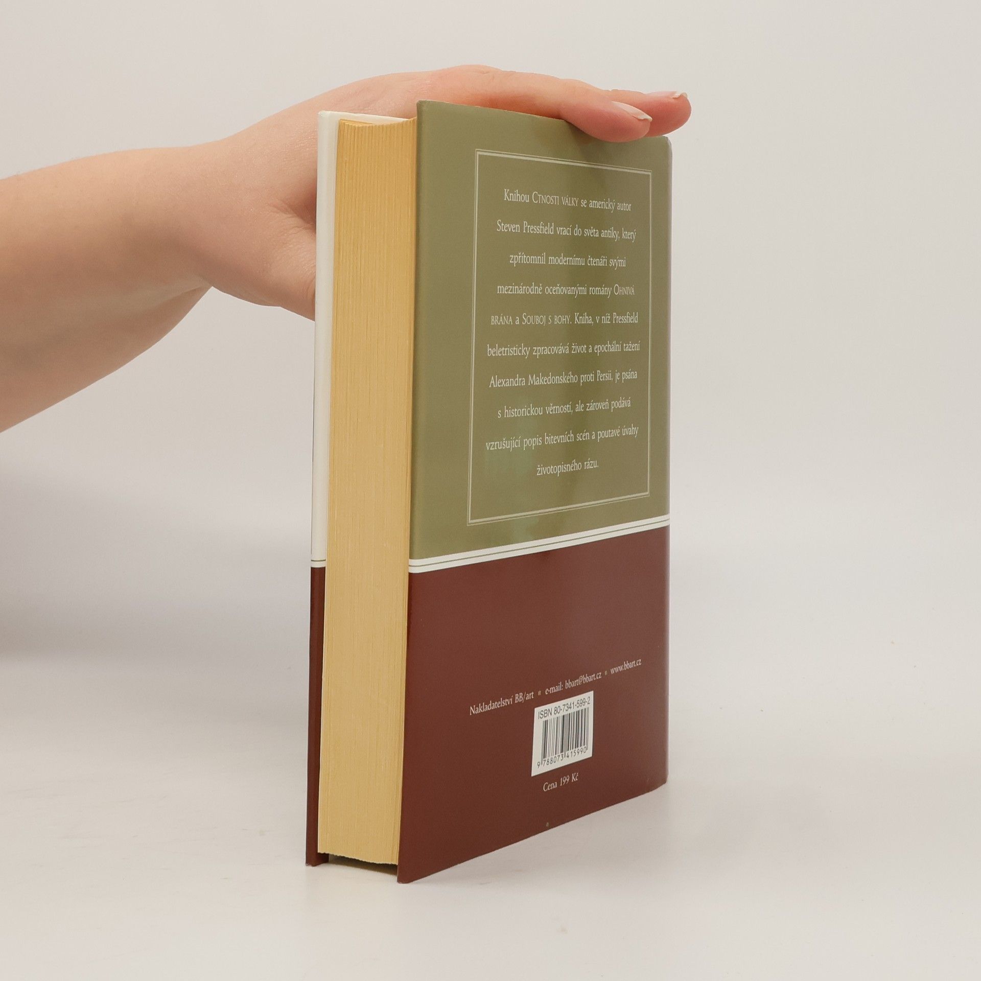 Románem „Ctnosti války“ se americký autor Steven Pressfield vrací do světa antiky, který zpřítomnil modernímu čtenáři svými mezinárodně oceňovanými bestsellery „Ohnivá brána“ a „Souboj s bohy“. (Oba tituly vydalo v českém překladu nakladatelství BBart, stejně jako „Poslední z Amazonek“, román situovaný na pomezí mytologie.) Kniha, v níž Pressfield beletristicky zpracovává život a epochální tažení Alexandra Makedonského proti Persii, je psána s historickou věrností, ale zároveň podává vzrušující popis bitevních scén a poutavé úvahy životopisného rázu.