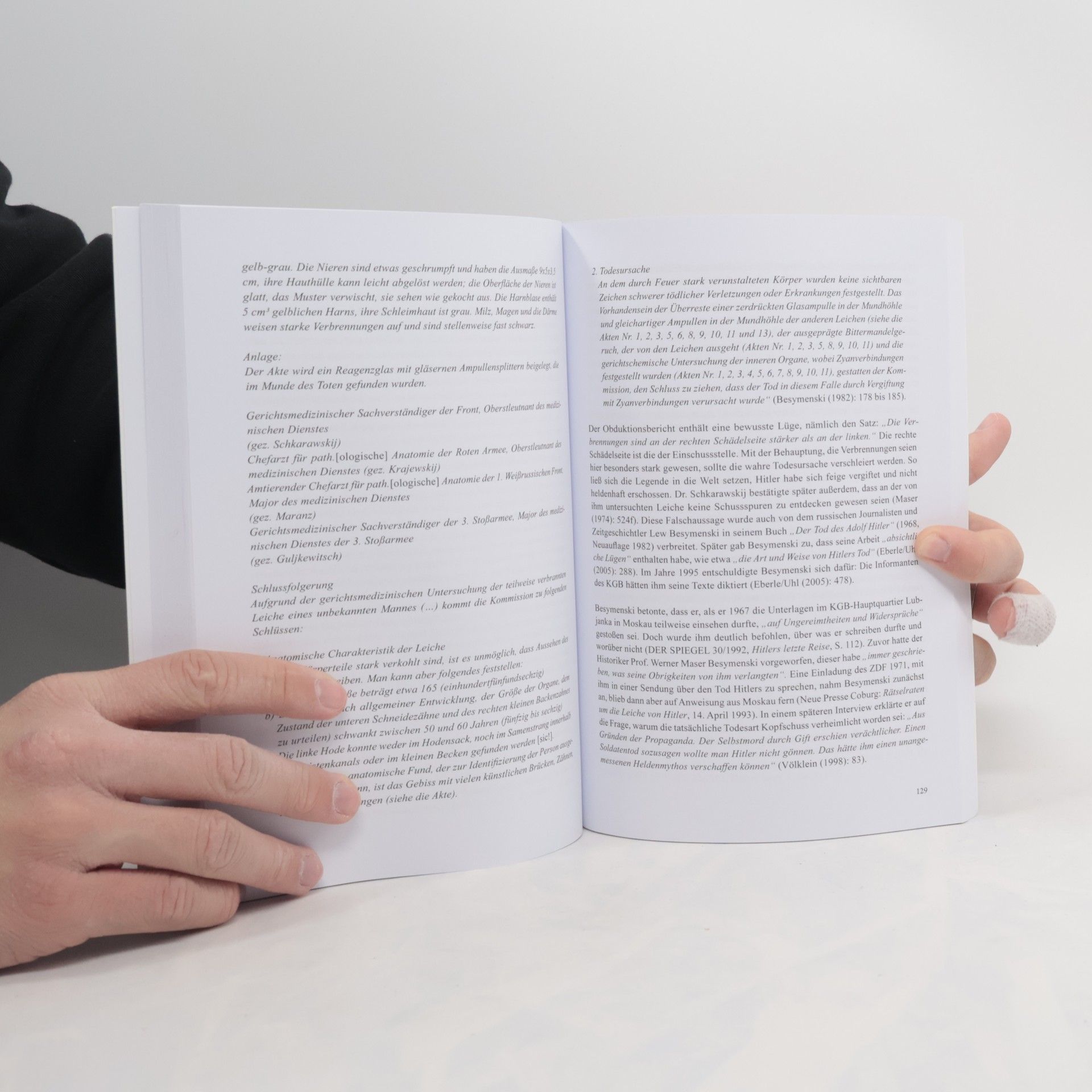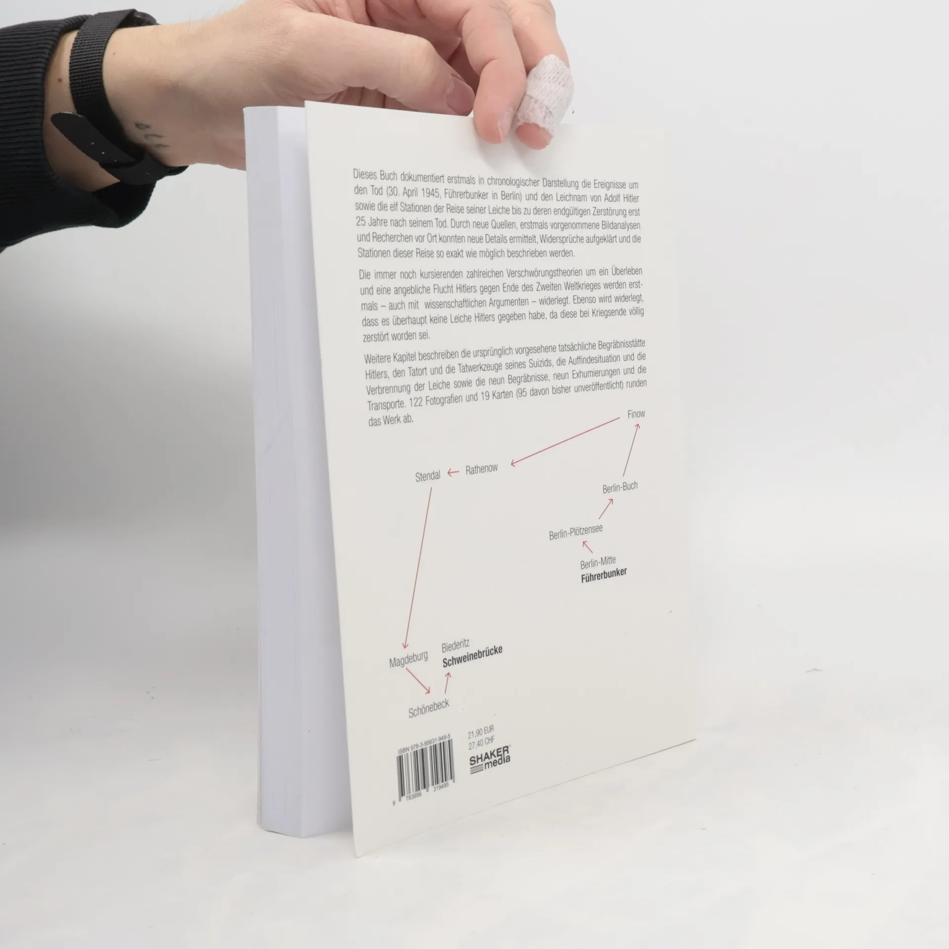Dieses Buch dokumentiert erstmals in chronologischer Darstellung die Ereignisse um den Tod (30. April 1945, Führerbunker in Berlin) und den Leichnam von Adolf Hitler sowie die elf Stationen der Reise seiner Leiche bis zu deren endgültigen Zerstörung erst 25 Jahre nach seinem Tod. Durch neue Quellen, erstmals vorgenommene Bildanalysen und Recherchen vor Ort konnten neue Details ermittelt, Widersprüche aufgeklärt und die Stationen dieser Reise so exakt wie möglich beschrieben werden. Die immer noch kursierenden zahlreichen Verschwörungstheorien um ein Überleben und eine angebliche Flucht Hitlers gegen Ende des Zweiten Weltkrieges werden erstmals – auch mit wissenschaftlichen Argumenten – widerlegt. Ebenso wird widerlegt, dass es überhaupt keine Leiche Hitlers gegeben habe, da diese bei Kriegsende völlig zerstört worden sei. Weitere Kapitel beschreiben die ursprünglich vorgesehene tatsächliche Begräbnisstätte Hitlers, den Tatort und die Tatwerkzeuge seines Suizids, die Auffindesituation und die Verbrennung der Leiche sowie die neun Begräbnisse, neun Exhumierungen und die Transporte. 122 Fotografien und 19 Karten (95 davon bisher unveröffentlicht) runden das Werk ab.