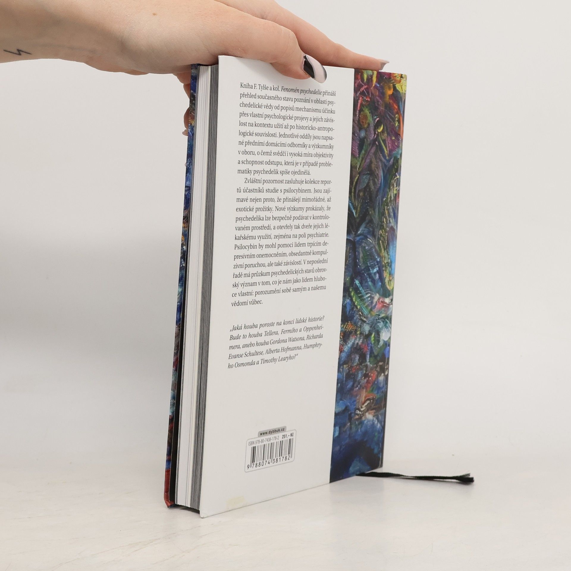 Kniha F. Tylše a kol. Fenomén psychedelie přináší přehled současného stavu poznání v oblasti psychedelické vědy od popisů mechanismu účinku přes vlastní psychologické projevy a jejich závislost na kontextu užití až po historicko-antropologické souvislosti. Jednotlivé oddíly jsou napsané předními domácími odborníky a výzkumníky v oboru, o čemž svědčí i vysoká míra objektivity a schopnost odstupu, která je v případě problematiky psychedelik spíše ojedinělá. Zvláštní pozornost zasluhuje kolekce reportů účastníků studie s psilocybinem. Jsou zajímavé nejen proto, že přinášejí mimořádné, až exotické prožitky. Nové výzkumy prokázaly, že psychedelika lze bezpečně podávat v kontrolovaném prostředí, a otevřely tak dveře jejich lékařskému využití, zejména na poli psychiatrie. Psilocybin by mohl pomoci lidem trpícím depresivním onemocněním, obsedantně kompulzivní poruchou, ale také závislostí. V neposlední řadě má průzkum psychedelických stavů obrovský význam v tom, co je nám jako lidem hluboce vlastní: porozumění sobě samým a našemu vědomí vůbec.