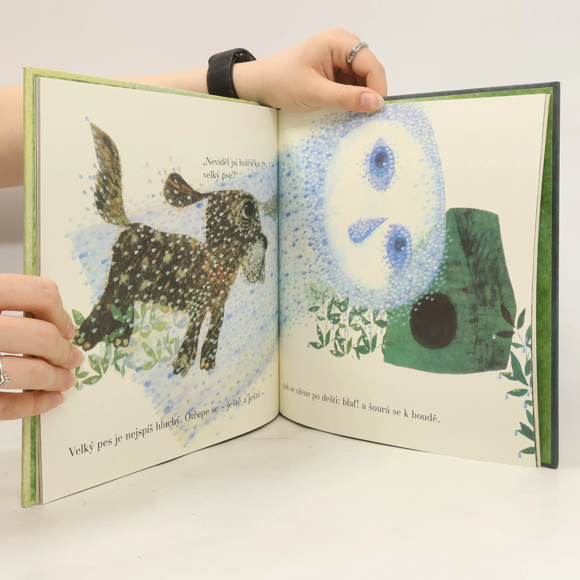 Poetické vyprávění o jednom letním deštivém dnu. Příběh doprovází celostránkové ilustrace. Byla jedna holčička a ta toužila v liduprázdných ulicích města někoho potkat. Nakonec potkala déšť.