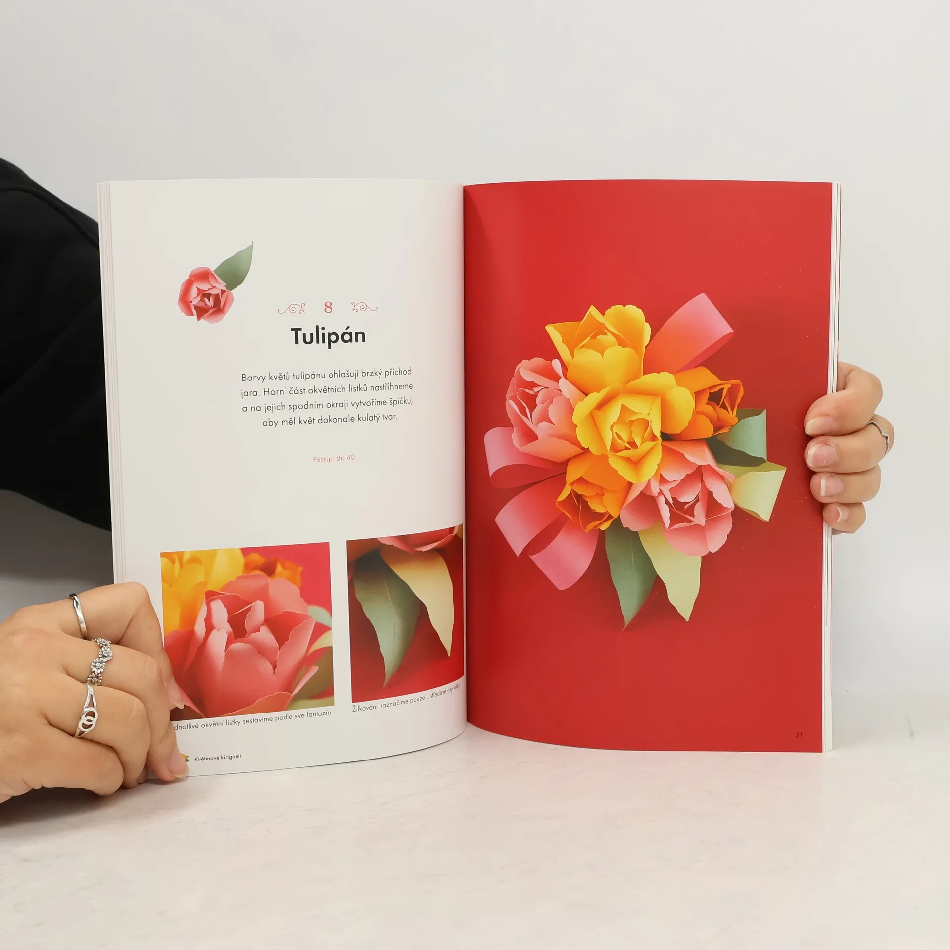 Spony na záclony, věnce a věnečky, květinové závěsy, slavnostní dekorace, 3D přání vytvořené z nádherných papírových květů pečlivého řemeslného zpracování vzbudí jistě mnoho komplimentů. Každý krok realizace uvedených drobných "děl" je podrobně popsán a vysvětlen – od řezání, drážkování, lepení až po konečné tvarování pomocí různých způsobů skládání.