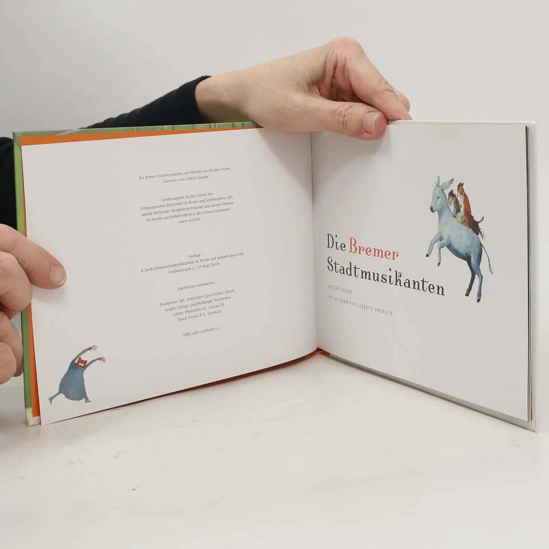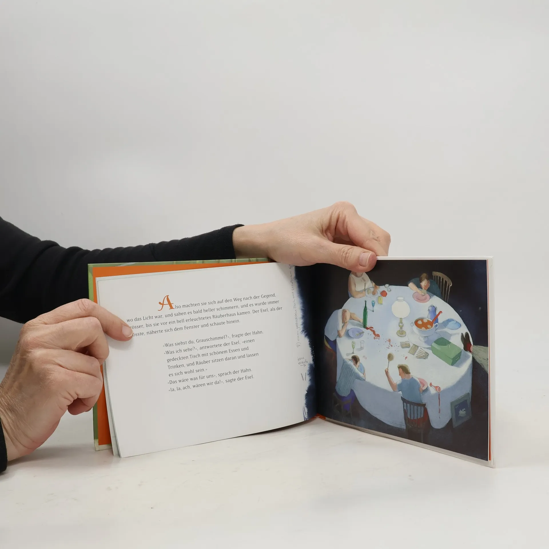 Jahrelang hat der Esel für den Müller das Getreide geschleppt. Jetzt, da er alt und nicht mehr ganz so kräftig ist, will ihn der Meister loswerden. „Ich reiße aus und werde Stadtmusikant! In Bremen.“ Auf seiner Reise trifft er einen Hund, eine Katze und einen Hahn. Als es Nacht wird, entdecken die vier Freunde ein Häuschen im Wald. Als sie merken, dass darin Räubern wohnen, verjagen sie die Bande und ziehen kurzerhand selbst dort ein. – Ein Märchen aus der Sammlung der Brüder Grimm.