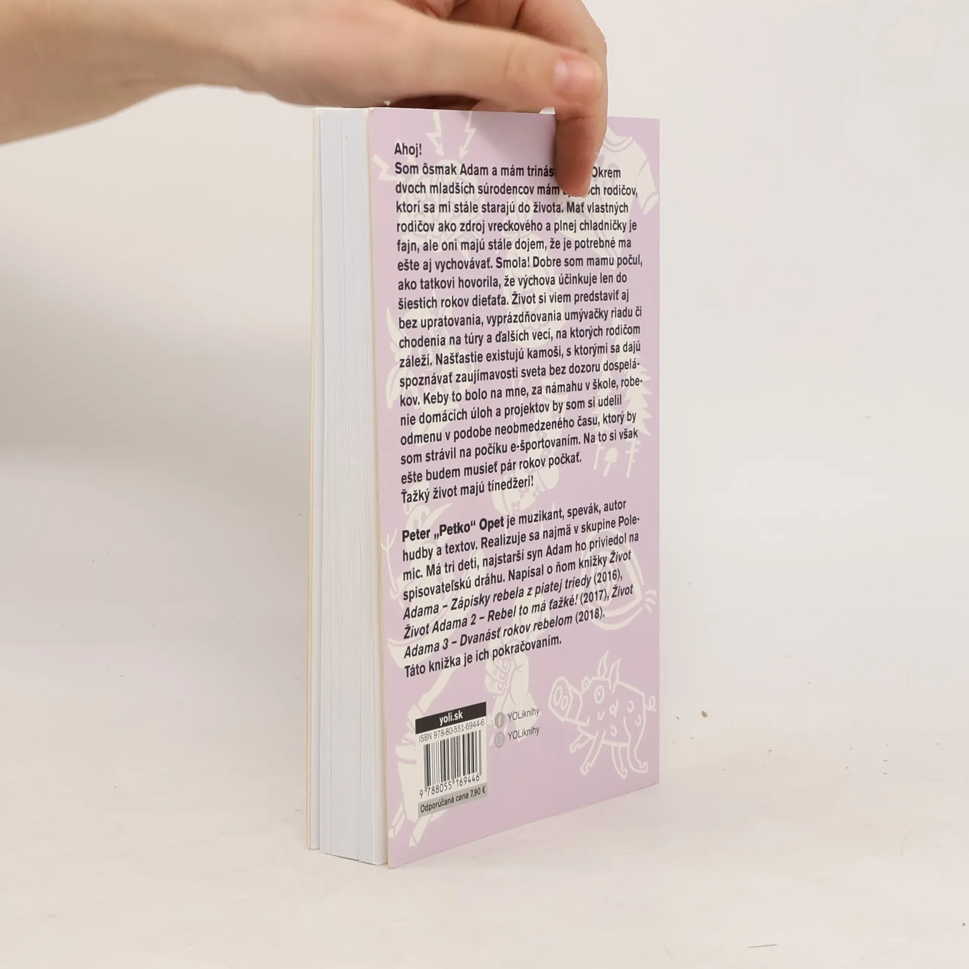 Som ôsmak Adam a mám trinásť rokov. Okrem dvoch mladších súrodencov mám aj dvoch rodičov, ktorí sa mi stále starajú do života. Mať vlastných rodičov ako zdroj vreckového a plnej chladničky je fajn, ale oni majú stále dojem, že je potrebné ma ešte aj vychovávať. Smola! Dobre som mamu počul, ako tatkovi hovorila, že výchova účinkuje len do šiestich rokov dieťaťa. Život si viem predstaviť aj bez upratovania, vyprázdňovania umývačky riadu či chodenia na túry a ďalších vecí, na ktorých rodičom záleží. Našťastie existujú kamoši, s ktorými sa dajú spoznávať zaujímavosti sveta bez dozoru dospelákov. Keby to bolo na mne, za námahu v škole, robenie domácich úloh a projektov by som si udelil odmenu v podobe neobmedzeného času, ktorý by som strávil na počíku e-športovaním. Na to si však ešte budem musieť pár rokov počkať. Ťažký život majú tínedžeri!