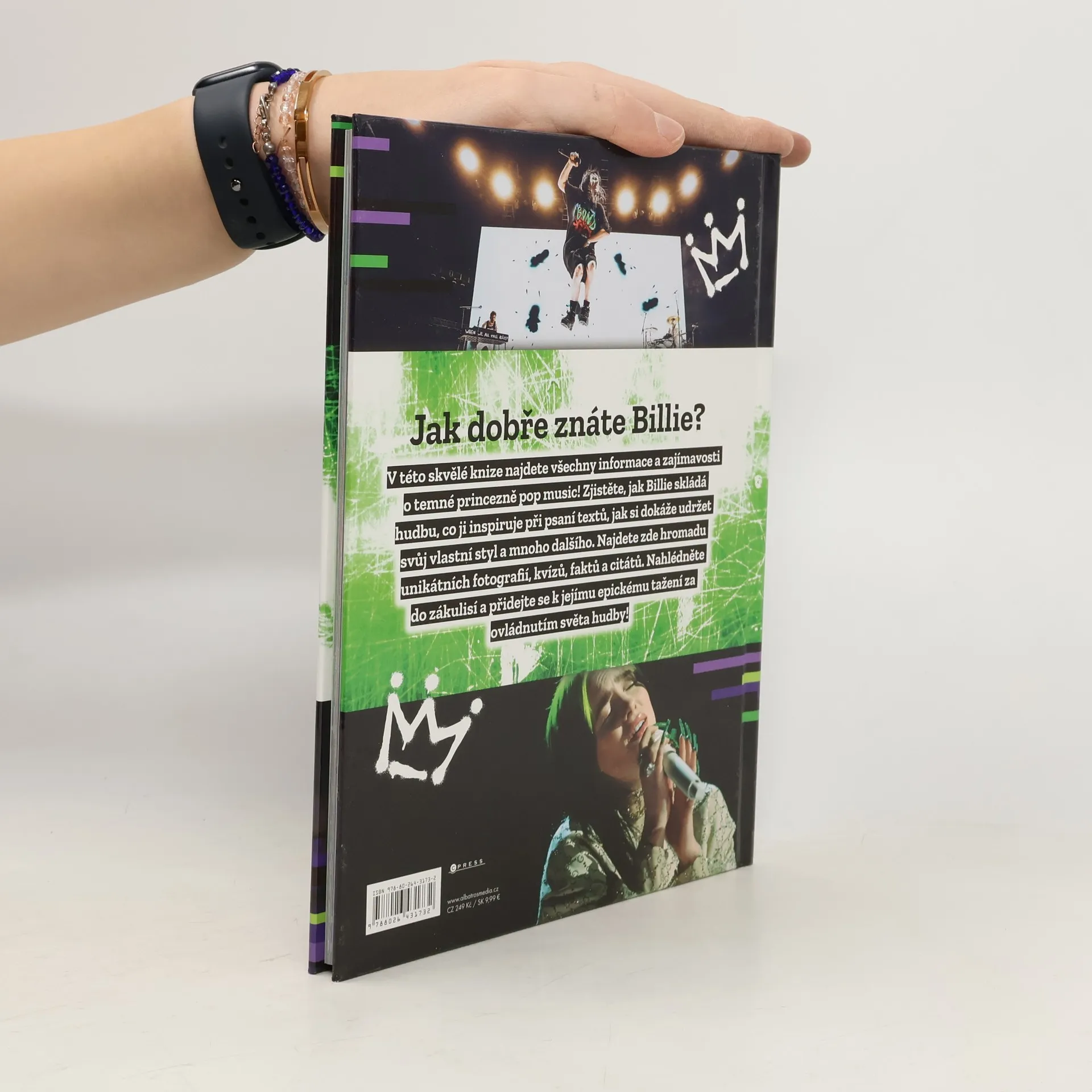V této skvělé knize najdete všechny informace a zajímavosti o temné princezně pop music! Zjistěte, jak Billie skládá hudbu, co ji inspiruje při psaní textů, jak si dokáže udržet svůj vlastní styl a mnoho dalšího. Najdete zde hromadu unikátních fotografií, kvízů, faktů a citátů. Nahlédněte do zákulisí a přidejte se k jejímu epickému tažení za ovládnutím světa hudby!