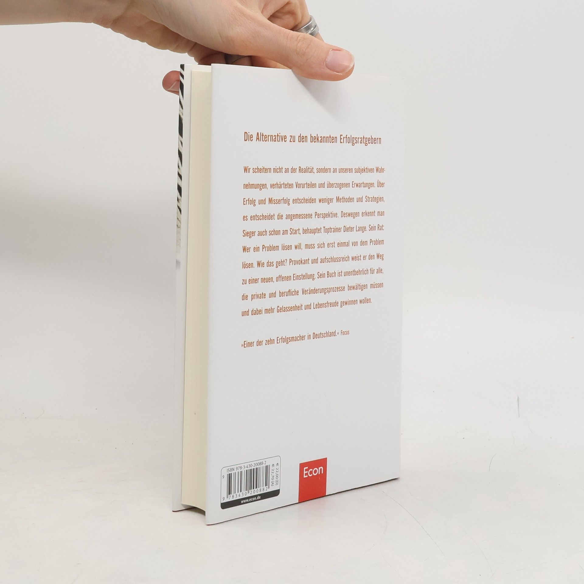 Wir scheitern nicht an der Realität, sondern an unseren subjektiven Wahrnehmungen, verhärteten Vorurteilen und überzogenen Erwartungen. Dabei entscheidet vor allem die richtige Perspektive über Erfolg und Misserfolg: Sieger erkennt man bereits am Start, behauptet Toptrainer Dieter Lange und rät: Wer ein Problem lösen will, muss sich erst einmal von dem Problem lösen. Wie das geht? Provokant, kurzweilig und voll verblüffender Einsichten weist Dieter Lange den Weg zu einer neuen, offenen Einstellung und zeigt, wie wir unseren Horizont systematisch um neue Sicht weisen erweitern. Sein Buch ist unentbehrlich für alle, die private und berufliche Veränderungsprozesse bewältigen müssen, die sich weiter entwickeln und dabei mehr Gelassenheit und Glück gewinnen wollen.