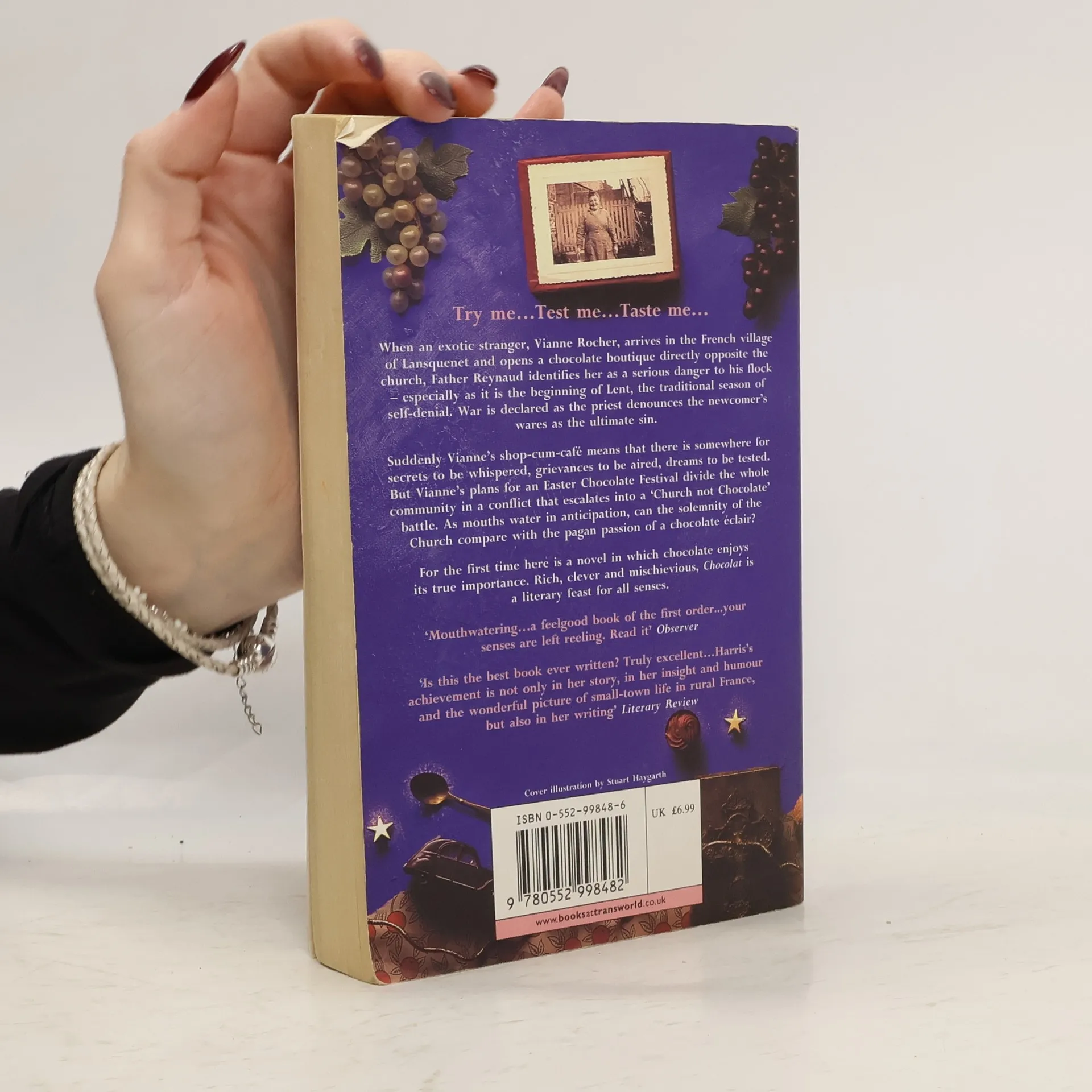 Try me...Test me...Taste me.When an exotic stranger, Vianne Rocher, arrives in the French village of Lansquenet and opens a chocolate boutique directly opposite the church, Father Reynaud identifies her as a serious danger to his flock especially as it