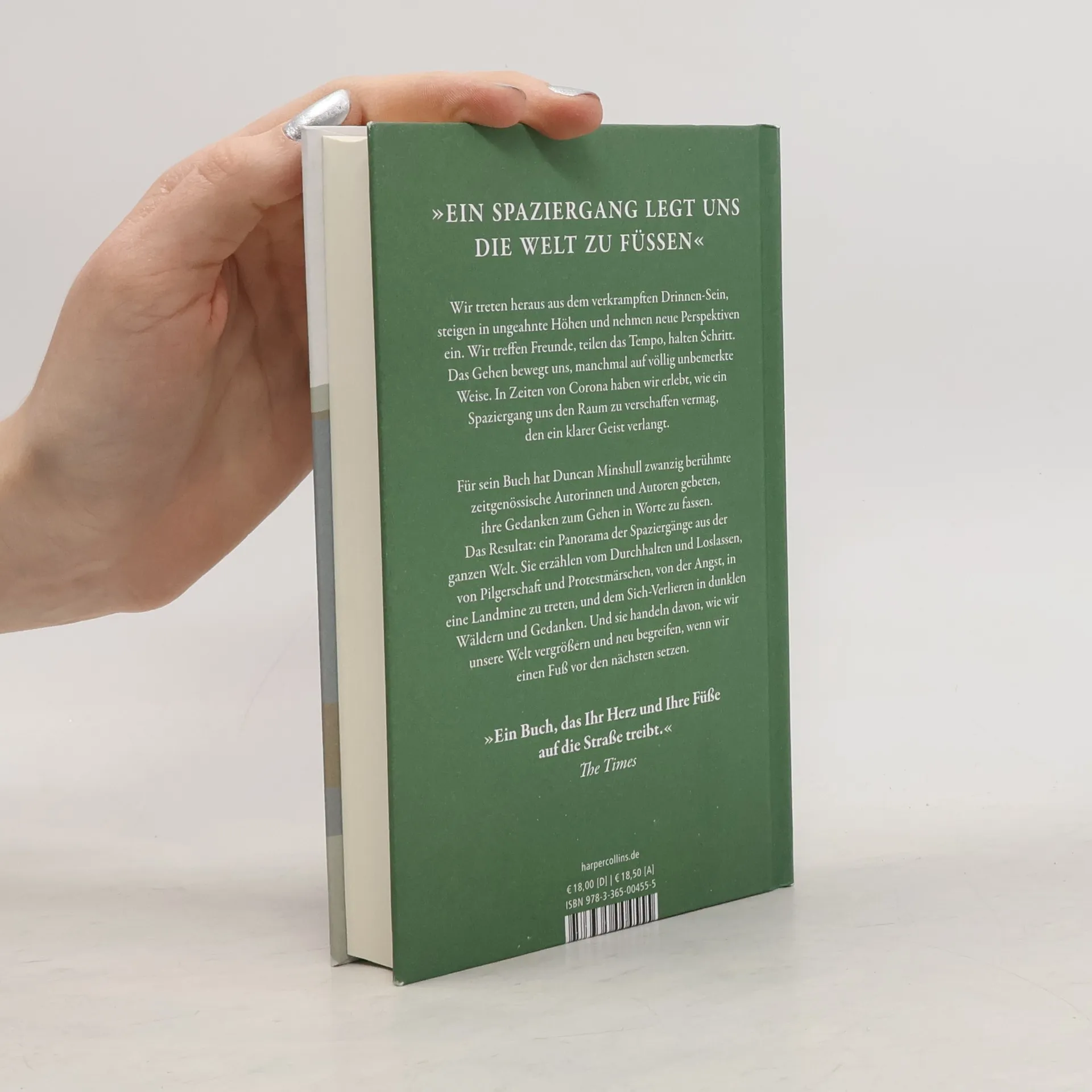 »Ein Buch, das Ihr Herz und Ihre Füße auf die Straße treibt.« The Times Ein Spaziergang legt uns die Welt zu Füßen. Wir treten heraus aus dem verkrampften Drinnen-sein, steigen in ungeahnte Höhen und nehmen neue Perspektiven ein. Wir treffen Freunde, teilen das Tempo, halten Schritt. Das Gehen bewegt uns, manchmal auf völlig unbemerkte Weise. In Zeiten von Corona haben wir erlebt, wie ein Spaziergang uns den Raum zu verschaffen vermag, den ein klarer Geist verlangt. Für sein Buch hat Duncan Minshull zwanzig berühmte zeitgenössische Autorinnen und Autoren gebeten, ihre Gedanken zum Gehen in Worte zu fassen. Es ist ein Panorama der Spaziergänge aus der ganzen Welt – Japan, Italien, Schottland, Berlin, Frankreich, USA, Pakistan, Indien, Australien, Kanada, Wales, Spanien. Sie erzählen vom Durchhalten und Loslassen, von Pilgerschaft und Protestmärschen, von der Angst, auf eine Landmine zu treten, und dem Sich-verlieren in dunklen Wäldern und Gedanken. Und sie handeln davon, wie wir unsere Welt vergrößern und neu begreifen, wenn wir einen Fuß vor den nächsten setzen. Mit Geschichten von Richard Ford, Tim Parks, A. L. Kennedy, Will Self, Sally Bayley, Agnès Poirier, Nicholas Shakespeare, Kamila Shamsie u. v. m.