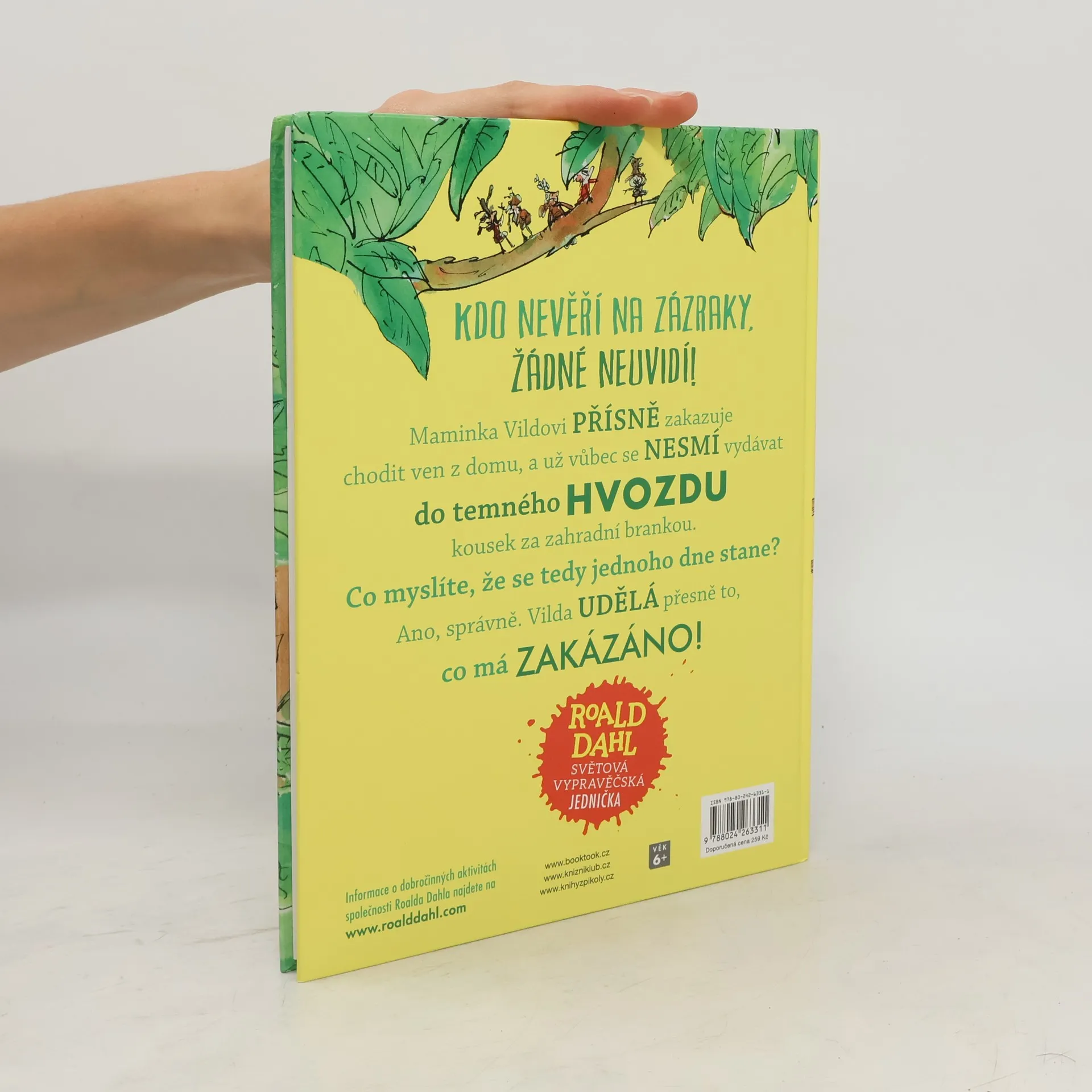 Maminka Vildovi přísně zakazuje chodit ven z domu, a už vůbec se nesmí vydávat do temného hvozdu kousek za zahradní brankou. Co myslíte, že se tedy jednoho dne stane? Ano, správně. Vilda udělá přesně to, co má zakázáno! Další úžasné dobrodružství od oblíbeného autora Roalda Dahla je určeno dětem od 6 let.
