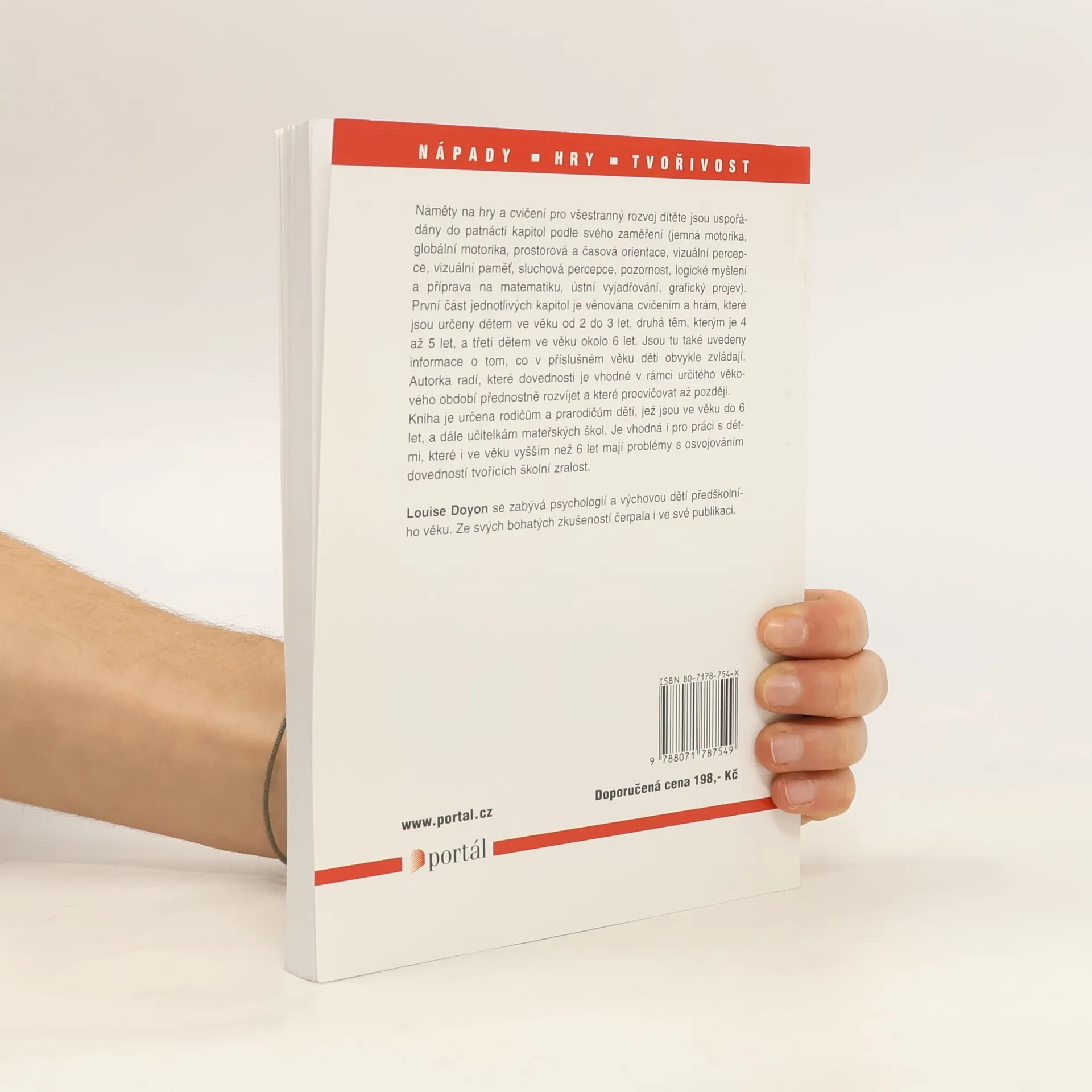 Hry pro rozvoj rozumových, smyslových a pohybových schopností a pro přípravu na školní docházku. Náměty na hry a cvičení jsou seřazeny do 15 kapitol podle oblasti, ze které si dítě osvojuje a procvičuje dovednosti (jemná motorika, globální motorika, prostorová a časová orientace, vizuální percepce, vizuální paměť, sluchová percepce, pozornost, logické myšlení a příprava na matematiku, ústní vyjadřování, grafický projev). Každá kapitola pak obsahuje tři skupiny her, a to podle věku dětí, kterým jsou hry určeny (2 až 3 roky, 4 až 5 let, okolo 6 let). Každá skupina je uvedena informací, co v daném věku děti už obvykle zvládají, a doporučením, kterým dovednostem se má dát v rámci určitého věkového období přednost a které se mají procvičovat až později. Určeno rpo děti do 6. let.