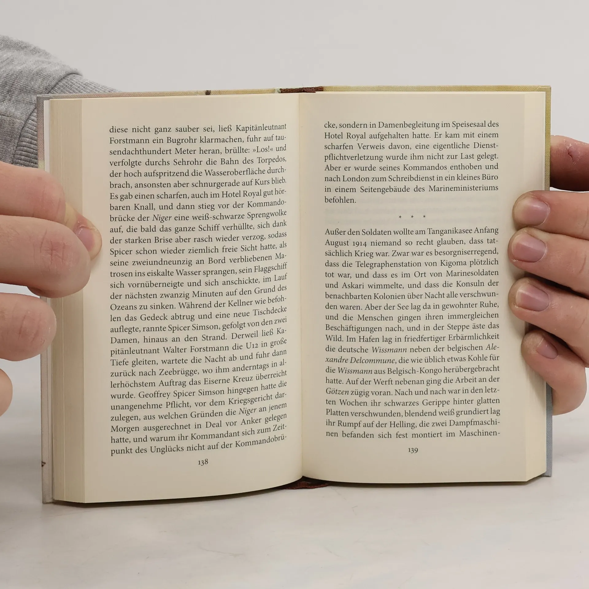 Drei deutsche Werftarbeiter und ihre Odyssee im Herzen AfrikasGeschenkausgabe im kleinen Format, bedrucktes Ganzleinen mit Lesebändchen. Drei Männer transportieren für Kaiser Wilhelm ein Dampfschiff in Einzelteilen nach Afrika, um es am Tanganikasee zusammenzubauen. Zu Beginn der Odyssee sind die drei norddeutschen Werftarbeiter fasziniert vom kolonialen Charme Deutsch-Ostafrikas, aber dann bricht der Erste Weltkrieg aus. Plötzlich werden Nachbarn zu Feinden und Gegner zu Freunden. Keiner will, aber jeder muss Krieg führen vor der pittoresken Kulisse des tropischen Sees. Und jeder versucht, mit heiler Haut davonzukommen in einer aus den Fugen geratenden Welt.