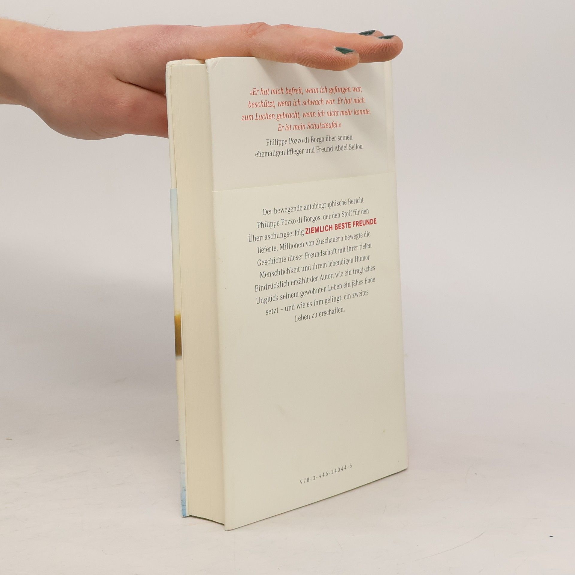 Der bewegende autobiographische Bericht Philippe Pozzo di Borgos, der den Stoff für einen sensationellen Kinoerfolg lieferte. Der Autor ist Geschäftsführer der Firma Champagnes Pommery, als er mit dem Gleitschirm abstürzt und querschnittsgelähmt bleibt. Er ist 42 Jahre alt und braucht einen Intensivpfleger. Der arbeitslose Ex-Sträfling Abdel kriegt den Job. Mit seiner lebensfrohen und authentischen Art wird Abdel zu Philippes „Schutzteufel“. Zehn Jahre lang pflegt er ihn und gibt ihm die Lebensfreude zurück. Von O. Nakache und E. Toledano verfilmt, ist diese Geschichte einer Freundschaft, die auf Respekt und Toleranz gründet, zu einem der erfolgreichsten französischen Filme aller Zeiten geworden.