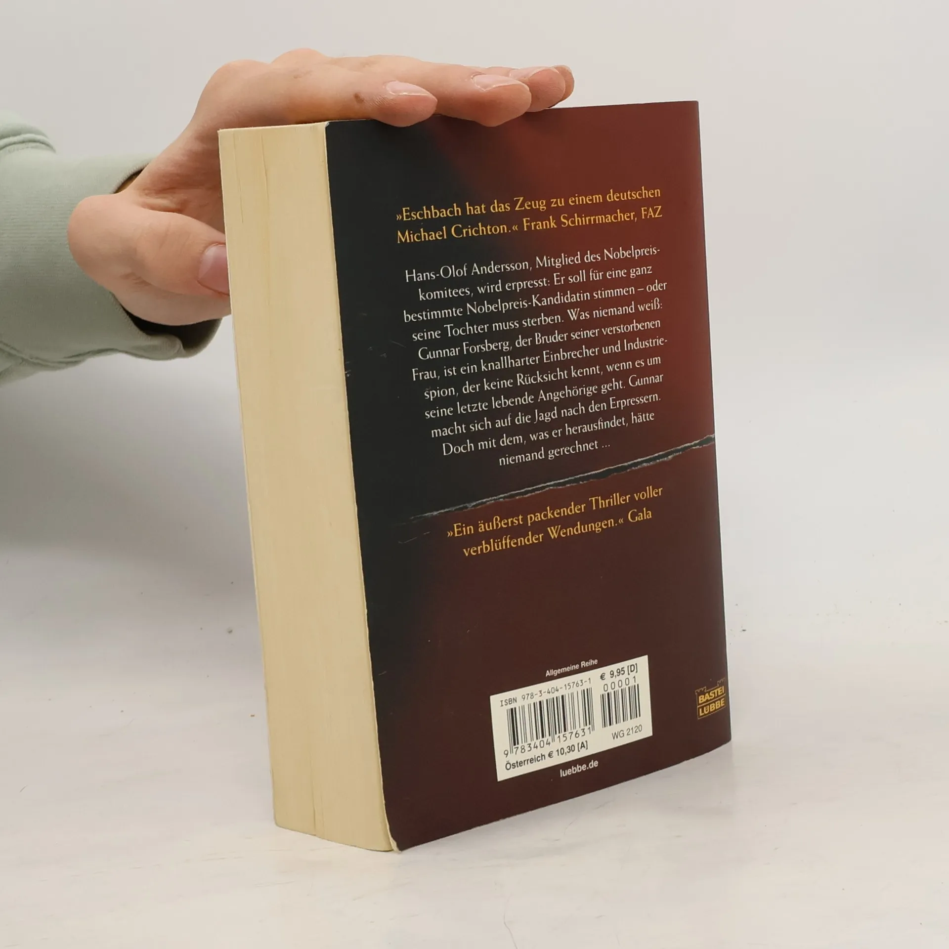 Hans-Olof Andersson, Mitglied des Nobelpreiskomitees, wird erpresst: Er soll für eine ganz bestimmte Nobelpreis-Kandidatin stimmen - oder seine Tochter muss sterben. Was niemand weiß: Gunnar Forsberg, der Bruder seiner verstorbenen Frau, ist ein knallharter Einbrecher und Industriespion, der keine Rücksicht kennt, wenn es um seine letzte lebende Angehörige geht. Gunnar macht sich auf die Jagd nach den Erpressern. Doch mit dem, was er herausfindet, hätte niemand gerechnet ... Der Nobelpreis - spannende Thriller-Unterhaltung von Bestsellerautor Andreas Eschbach!