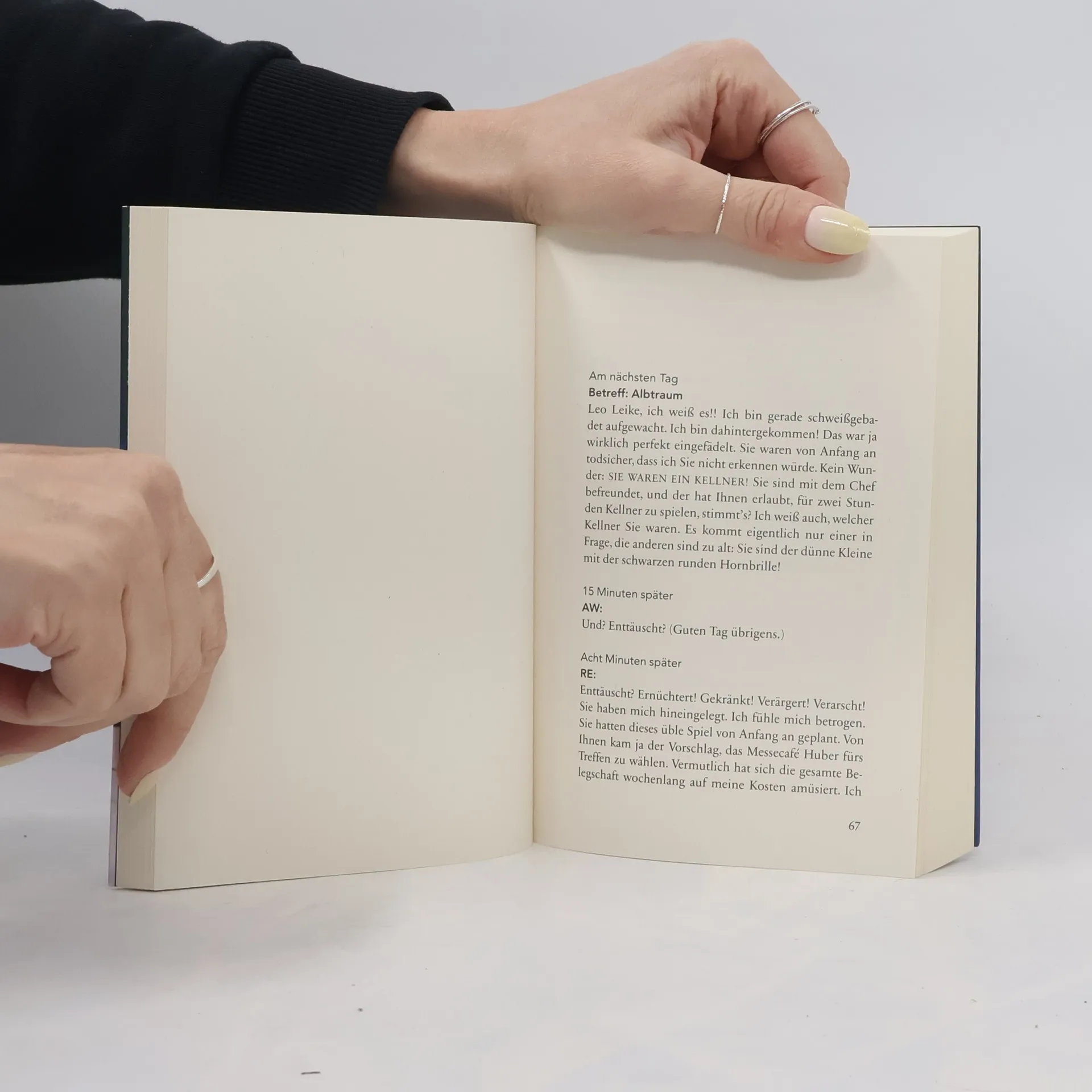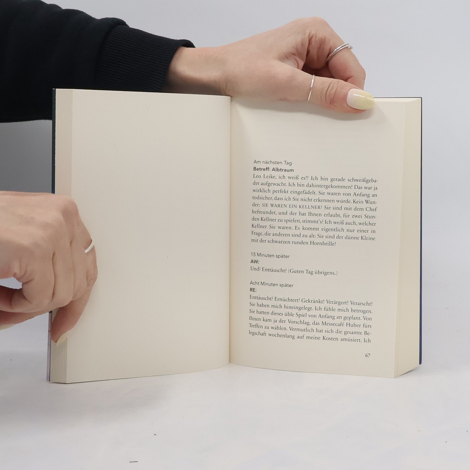 Emmi Rothner möchte per E-Mail ihr Abo der Zeitschrift „Like“ kündigen, doch durch einen Tippfehler landen ihre Nachrichten bei Leo Leike. Als Emmi wieder und wieder E-Mails an die falsche Adresse schickt, klärt Leo sie über den Fehler auf. Es beginnt ein außergewöhnlicher Briefwechsel, wie man ihn nur mit einem Unbekannten führen kann. Auf einem schmalen Grat zwischen totaler Fremdheit und unverbindlicher Intimität kommen sich die beiden immer näher – bis sie sich der unausweichlichen Frage stellen müssen: Werden die gesendeten, empfangenen und gespeicherten Liebesgefühle einer Begegnung standhalten? Und was, wenn ja?