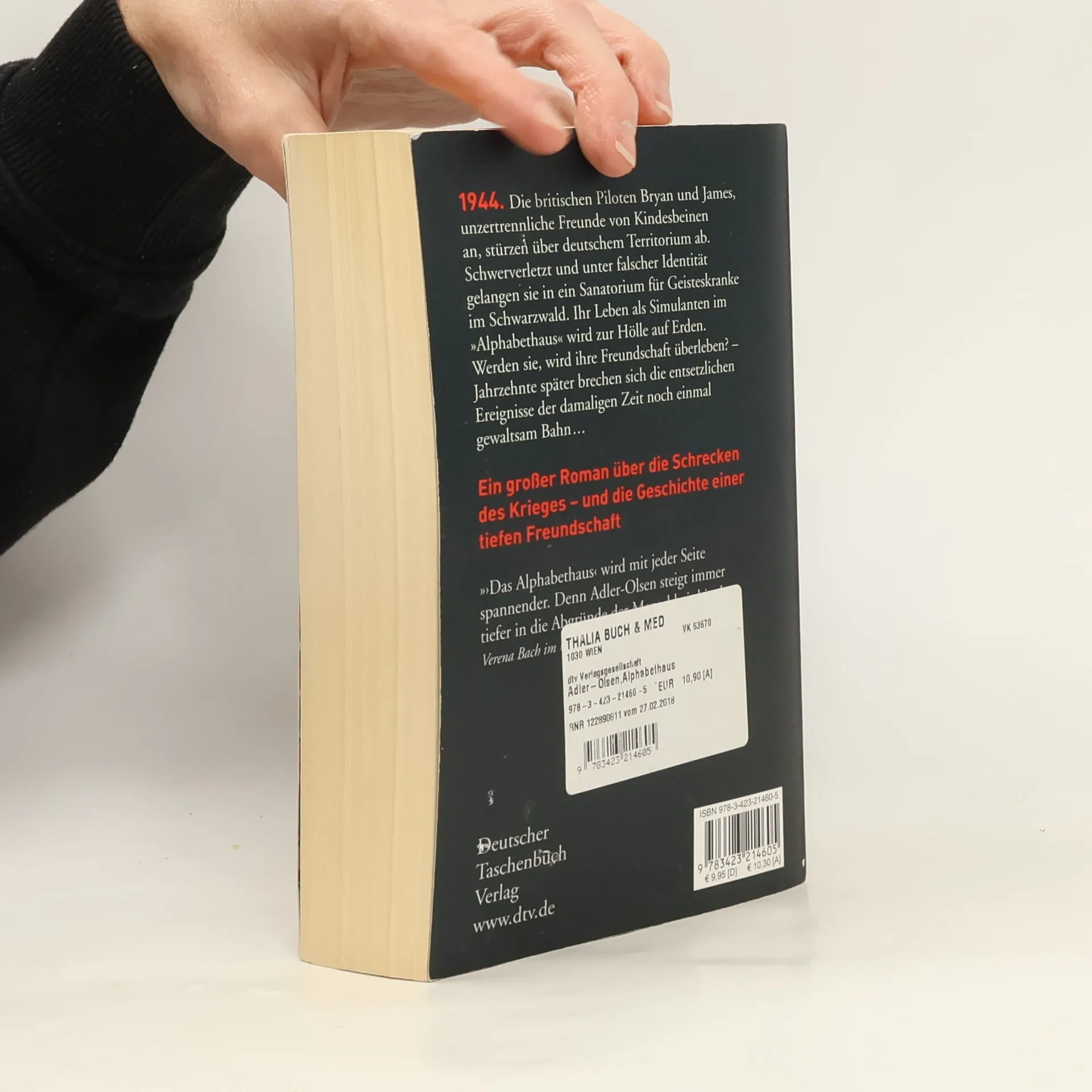 Der internationale Bestseller von Jussi Adler-Olsen jetzt im Taschenbuch Der Absturz zweier britischer Piloten hinter den feindlichen Linien … Ein Krankenhaus im Breisgau, in dem psychisch Kranke als Versuchskaninchen für Psychopharmaka dienen … Die dramatische Suche eines Mannes nach seinem Freund, den er dreißig Jahre zuvor im Stich gelassen hat … »Eine unfassbare Geschichte: die Schrecken des Krieges und das Schicksal psychisch zutiefst beschädigter Patienten einer Nervenheilanstalt auf der einen Seite, die Freundschaft zweier englischer Piloten und die Suche nach einem Verschwundenen auf der anderen, gehört zum Besten, was Jussi Adler-Olsen je geschrieben hat. Wie er das groteske Elend der Patienten einer Nervenklinik als Folge des Krieges schildert, ist anrührend und beklemmend zugleich. Man liest das Buch mit allen Sinnen.« Ingrid Brekke in ‚Aftenposten‘