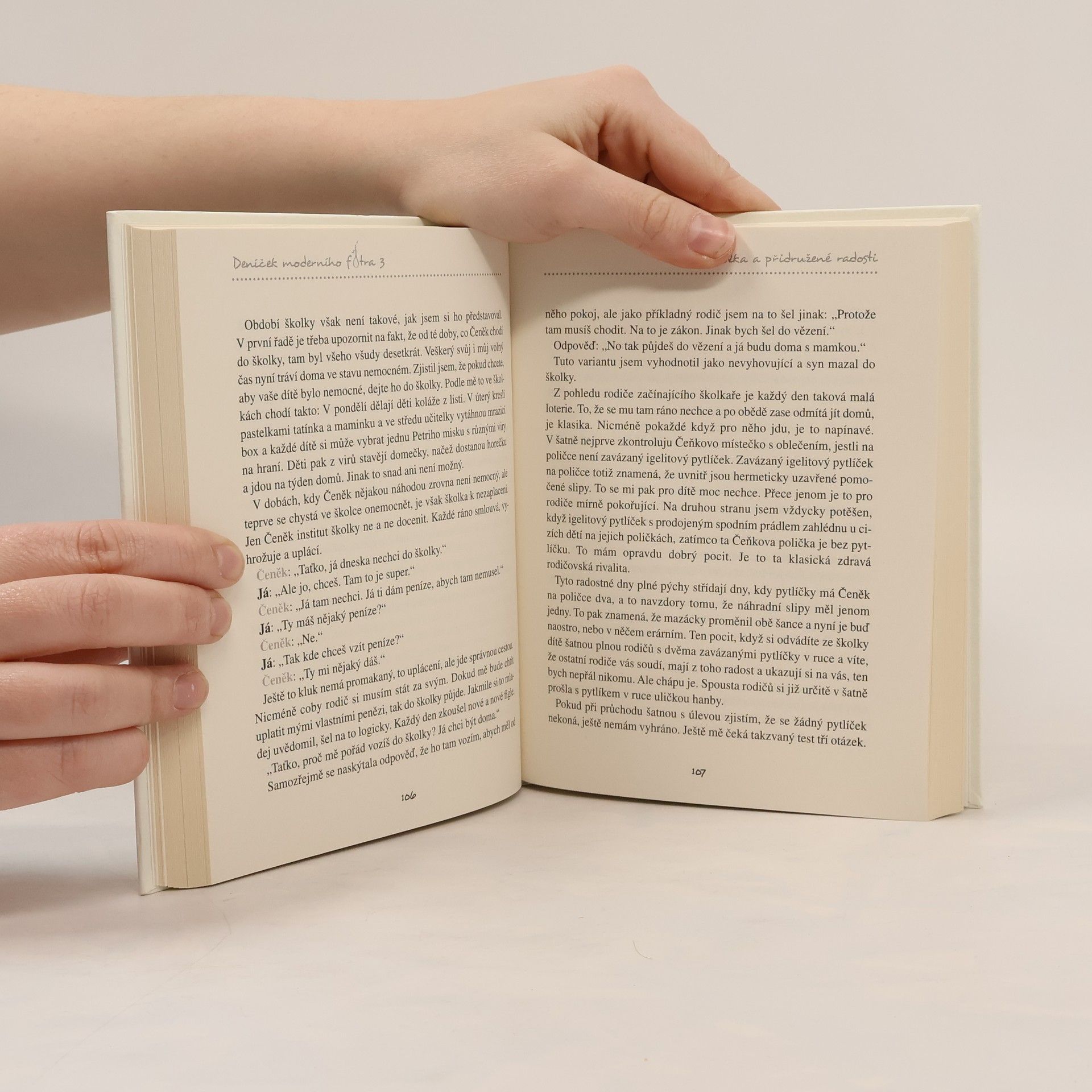 Třetí díl oblíbeného Deníčku moderního fotra je zároveň dílem posledním. Autor bezostyšně přiznává, že o svém synovi Čeňkovi napsal vše, co se dalo, a další dítě ani knihu by pravděpodobně nepřežil. Čeňkovi už jsou tři, plínky zkušeně zaměnil za nočník a svůj vyvinutý smysl pro vytváření domácího pekla dále zdokonaluje. Našemu fotrovi nastává údajně idylické období, kdy péči o hyperaktivní dítě převezme školka a další instituce. Nebyl by to ale Čeněk, aby každou novou situaci nepřetvořil v nový druh utrpení, a nebyl by to fotr, aby i tu nejšílenější situaci neuměl popsat s dokonale sarkastickým humorem.
