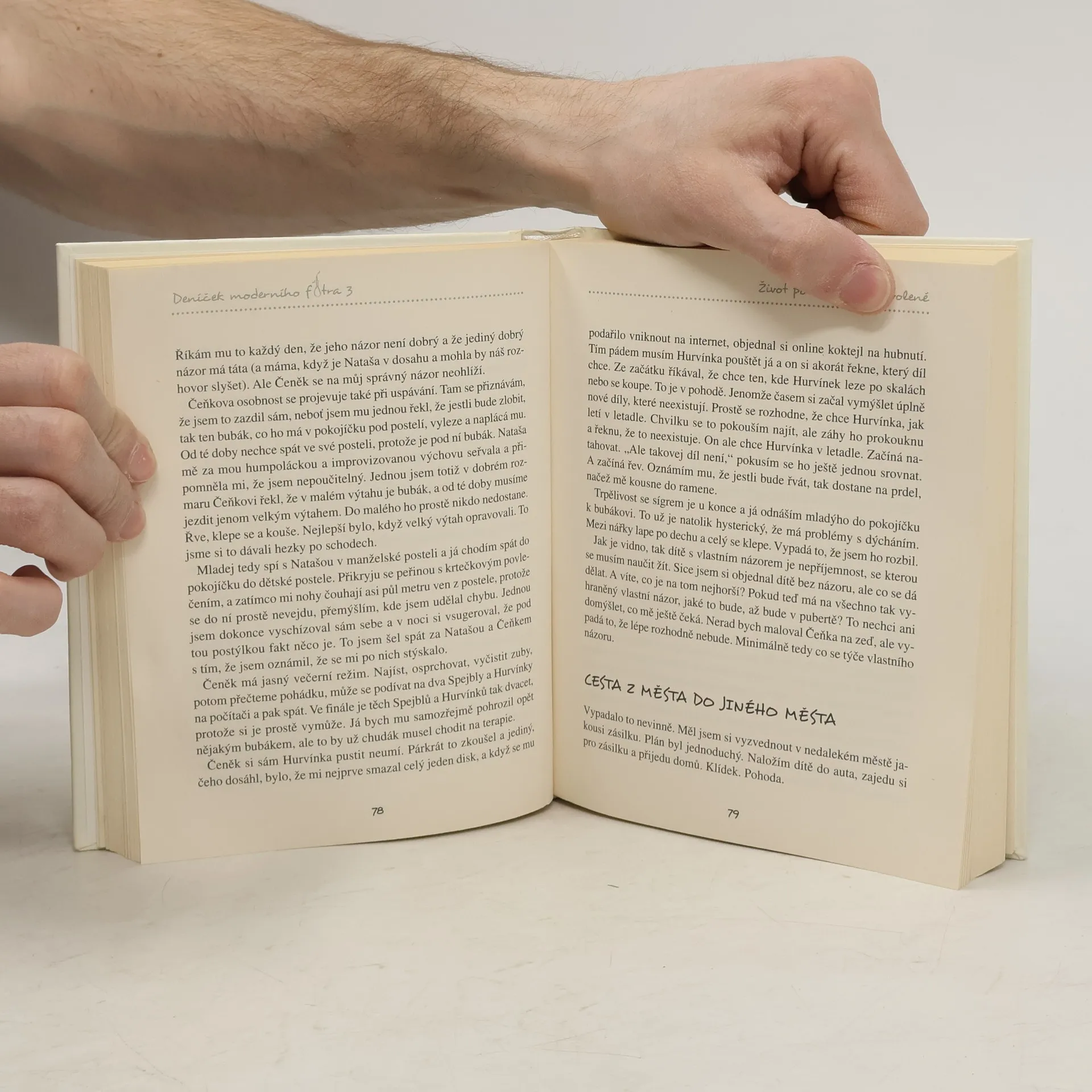 Třetí díl oblíbeného Deníčku moderního fotra je zároveň dílem posledním. Autor bezostyšně přiznává, že o svém synovi Čeňkovi napsal vše, co se dalo, a další dítě ani knihu by pravděpodobně nepřežil. Čeňkovi už jsou tři, plínky zkušeně zaměnil za nočník a svůj vyvinutý smysl pro vytváření domácího pekla dále zdokonaluje. Našemu fotrovi nastává údajně idylické období, kdy péči o hyperaktivní dítě převezme školka a další instituce. Nebyl by to ale Čeněk, aby každou novou situaci nepřetvořil v nový druh utrpení, a nebyl by to fotr, aby i tu nejšílenější situaci neuměl popsat s dokonale sarkastickým humorem.