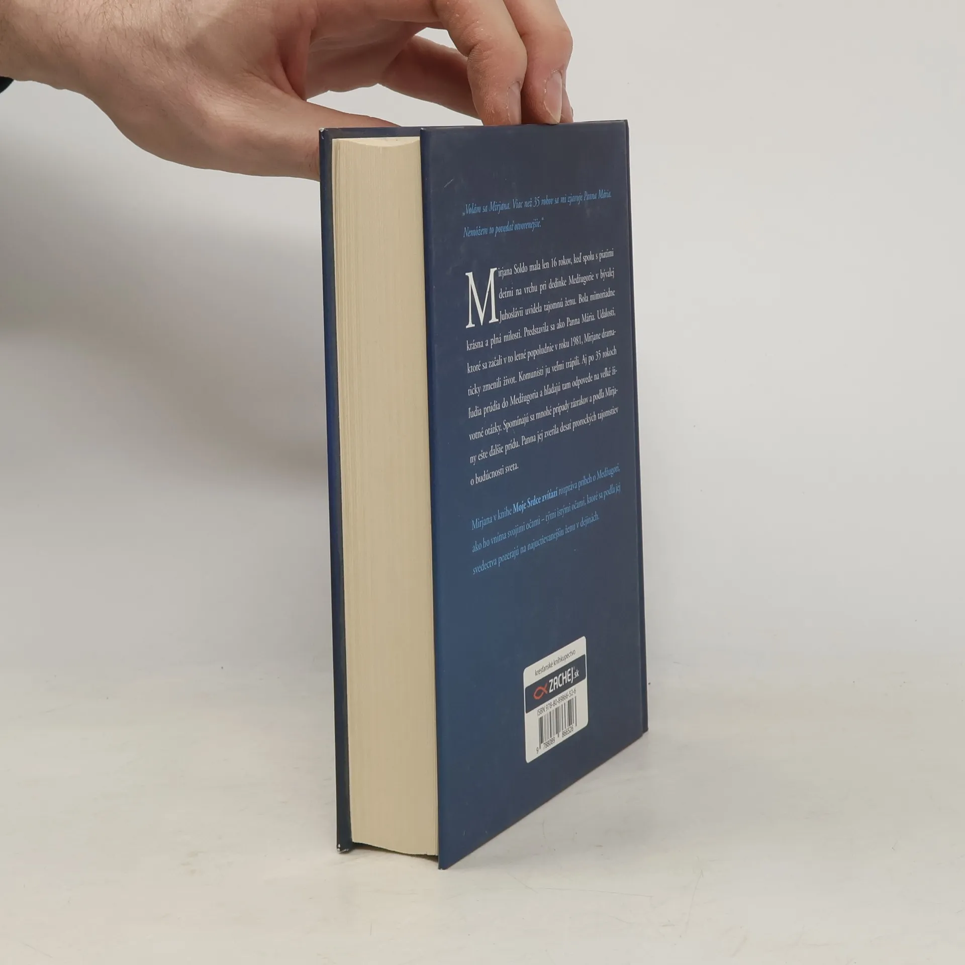 "Volám sa Mirjana. Viac než 35 rokov sa mi zjavuje Panna Mária. Nemôžem to povedať otvorenejšie.“ Mirjana Soldo mala len 16 rokov, keď spolu s piatimi deťmi na vrchu pri dedinke Medžugorie v bývalej Juhoslávii uvidela tajomnú ženu. Bola mimoriadne krásna a plná milosti. Predstavila sa ako Panna Mária. Udalosti, ktoré sa začali v to letné popoludnie v roku 1981, Mirjane dramaticky zmenili život. Komunisti ju veľmi trápili. Aj po 35 rokoch ľudia prúdia do Medžugoria a hľadajú tam odpovede na veľké životné otázky. Spomínajú sa mnohé prípady zázrakov a podľa Mirjany ešte ďalšie prídu. Panna Mária jej zverila desať prorockých tajomstiev o budúcnosti sveta. Mirjana v knihe Moje srdce zvíťazí rozpráva príbeh o Medžugorí, ako ho vníma svojimi očami – tými istými očami, ktoré sa podľa jej svedectva pozerajú na najuctievanejšiu ženu v dejinách. Kniha obsahuje fotografie z rodinného albumu vizionárky Mirjany Soldo. Spoluautormi knihy sú Miki Musa a Sean Bloomfield.