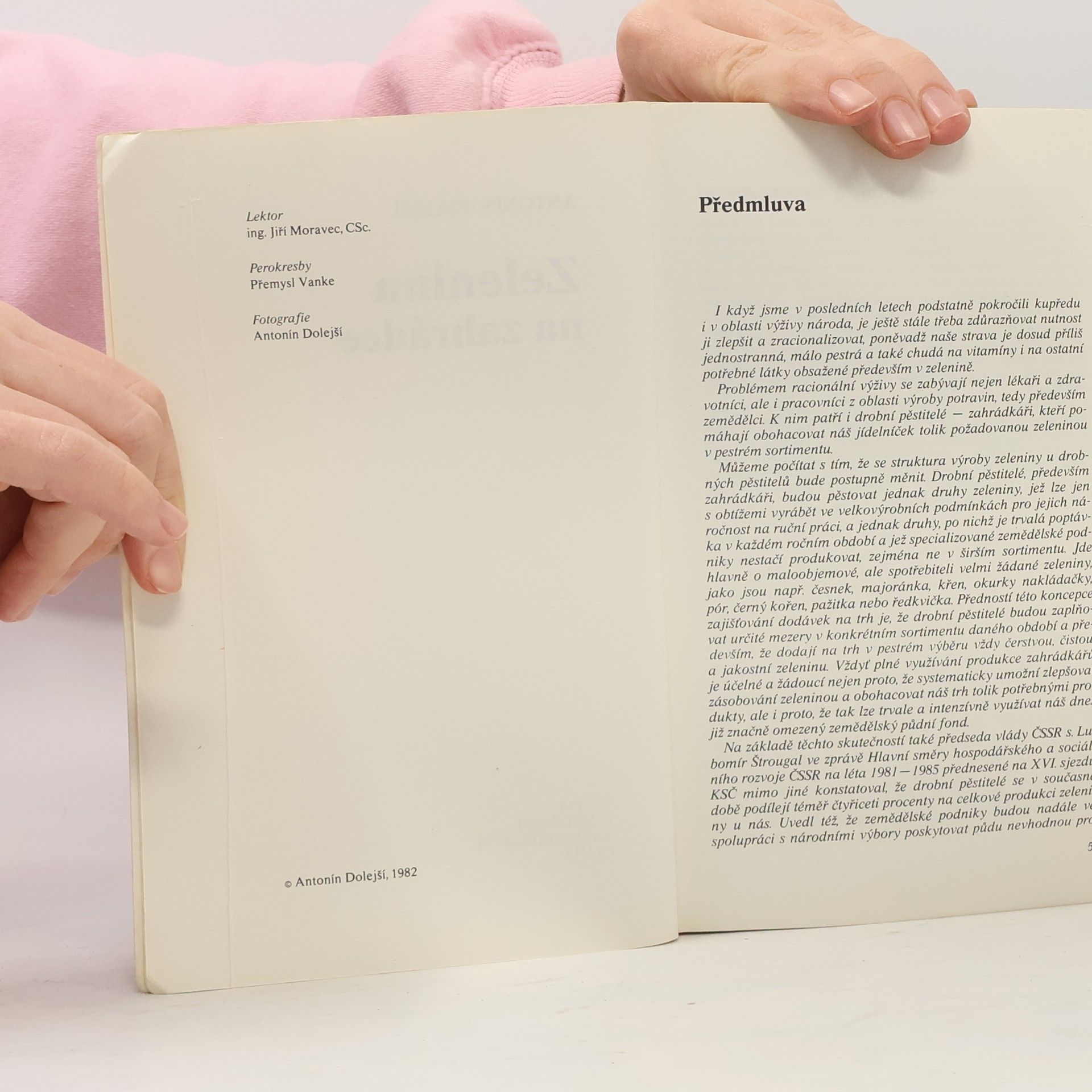 Výživa a hnojení, závlaha a výsadba zeleniny, příprava semen před setím, pařeniště a skleník v zahrádce, výsev zeleniny, péče o zeleninu, choroby a škůdci, sklizeň a uskladnění, pěstování jednotlivých druhů zeleniny. 16 stran barevné přílohy, 39 perokreseb a 41 fotografií.