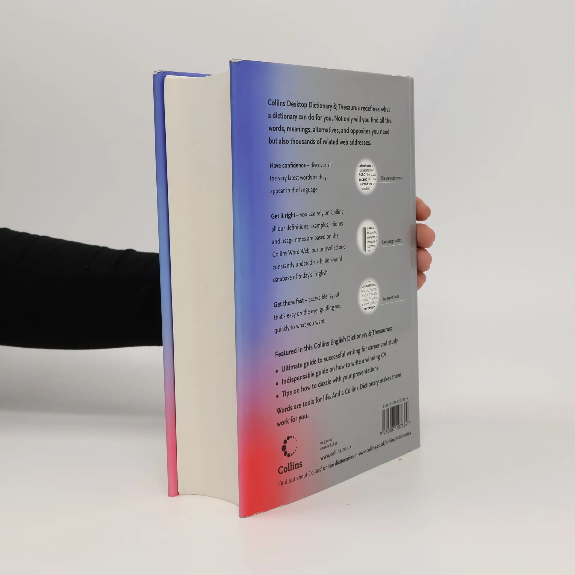 This first edition of the 'Collins Desktop Dictionary and Thesaurus' is a useful reference book for families and students, with matching dictionary and thesaurus texts on the same page, links to thousands of websites, and an invaluable supplement for lifelong learning.