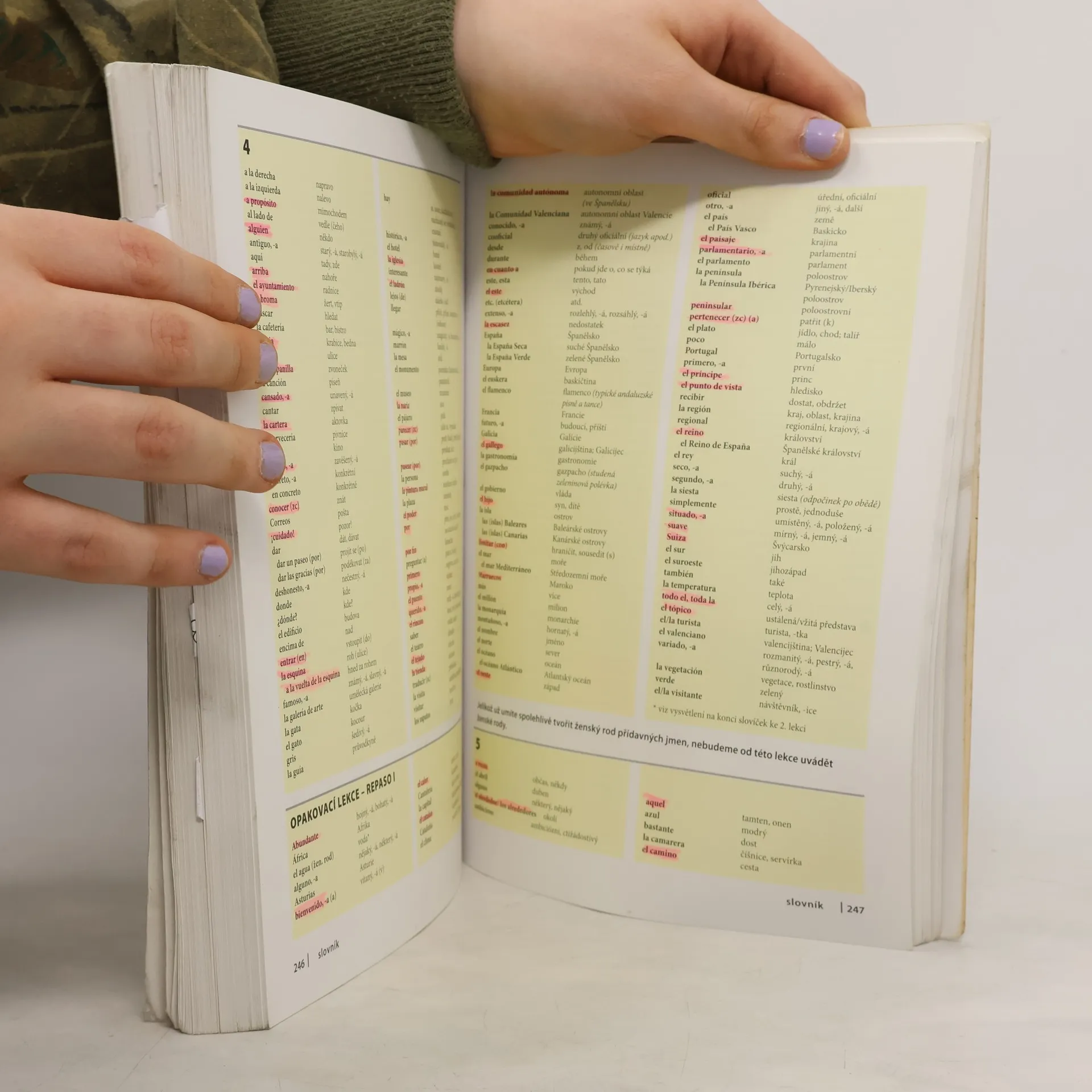 MODERNÍ, PRAKTICKÁ, PŘÍNOSNÁ Učte se současnou španělštinu! Zábavně a zajímavě! S atraktivní učebnicí! Publikace obsahuje 20 lekcí, které tvoří moduly po čtyřech lekcích a každá pátá lekce je opakovací. Lekce začínají moderními a autentickými krátkými texty, které jsou zaměřeny především na hovorový jazyk. Poté následuje oddíl Frazeologie, věnovaný obtížnějším frázím z výchozího textu, a dále naleznete výklad gramatiky. Jazykový koutek upozorňuje na konstrukce a vazby, které dělají českým studentům potíže. V každé lekci se také seznámíte s několika ustálenými rčeními nebo příslovími. Cvičení napomohou upevnit novou slovní zásobu a gramatiku. Vtipné obrázky přispějí k lepšímu zapamatování probírané látky. V opakovacích lekcích se seznámíte s reáliemi Španělska a španělsky mluvících zemí Latinské Ameriky. Cvičení se zaměřují na prověření znalostí daného tématu, ale najdete zde především úkoly na upevnění látky ze všech lekcí celého modulu. Velká pozornost je věnována rozdílům mezi evro