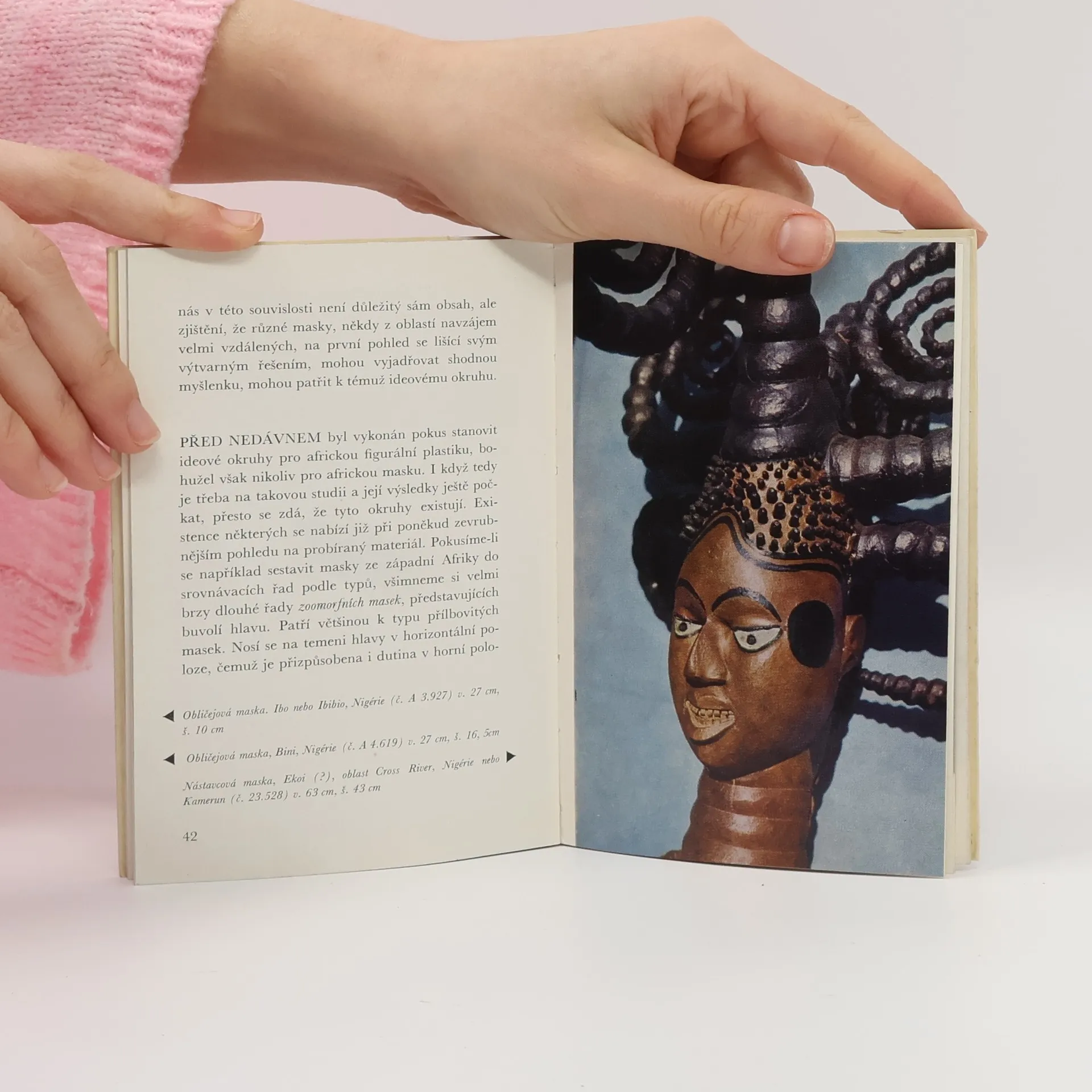 Publikace, která přináší barevné i černobílé reprodukce masek ze Sierry Leone či Libérie, Mall, Pobřeží slonoviny, Dahome, Nigérie, Kamerunu, Gabunu, Konga a Mosambiku, v průvodním textu vysvětluje nejen funkci těchto masek vafrické společnosti, v ritech jednotlivých kmenů, ale i jejich stylizované výrazové prostředky, techniku výroby a zajímavé doprovodné procesy.
