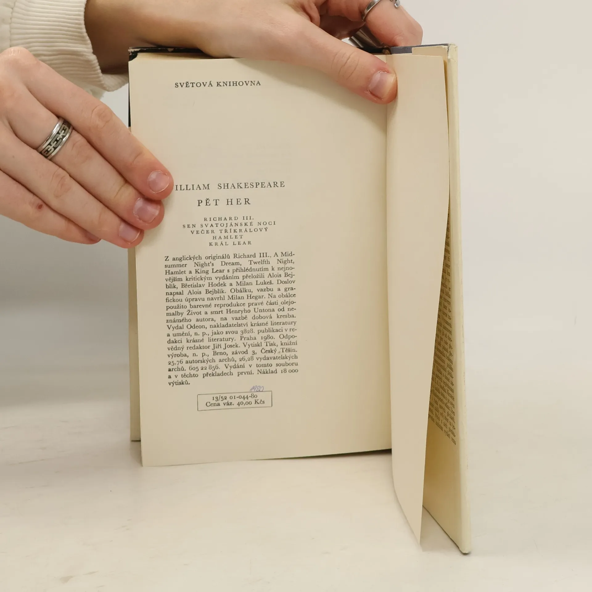 Svazek, postihující tři základní autorovy dramatické žánry, přináší historickou hru , dvě komedie a dvě tragédie. Nové překlady předkládají čtenáři dramata v té podobě, v jaké je vnímali Shakespearovi současníci, tj. bez pozdějších úprav. Richard III Sen svatojánské noci Večer tříkrálový čili Ať si to každý přebere, jak chce Hamlet, dánský princ Král Lear
