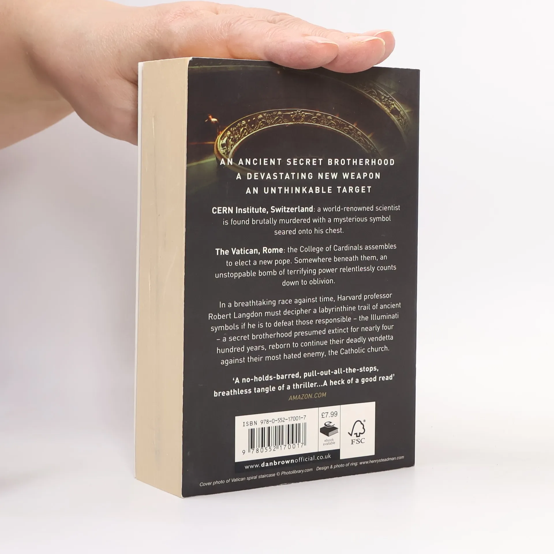CERN Institute, Switzerland: a world-renowned scientist is found brutally murdered with a mysterious symbol seared onto his chest. The Vatican, Rome: the College of Cardinals assembles to elect a new pope. Somewhere beneath them, an unstoppable bomb of terrifying power relentlessly counts down to oblivion.