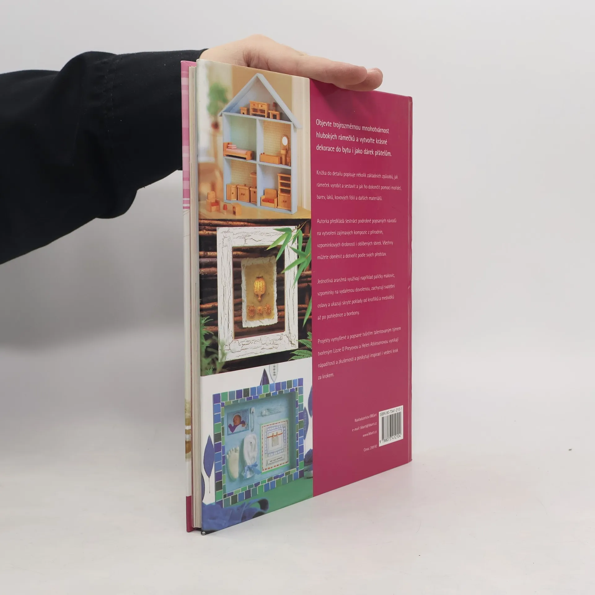 Knížka do detailu popisuje několik základních způsobů, jak rámeček vyrobit a sestavit a jak ho dokončit pomocí mořidel, barev, laků, kovových fólií a dalších materiálů. Autorka předkládá šestnáct podrobně popsaných návodů na vytvoření zajímavých kompozic z přírodnin, vzpomínkových drobností i oblíbených sbírek. Všechny můžete obměnit a dotvořit podle svých představ. Jednotlivá aranžmá využívají například paličky makovic, vzpomínky na vydařenou dovolenou, zachycují svatební oslavy a ukazují skryté poklady od knoflíků a medvídků až po pohlednice a bonbony.
