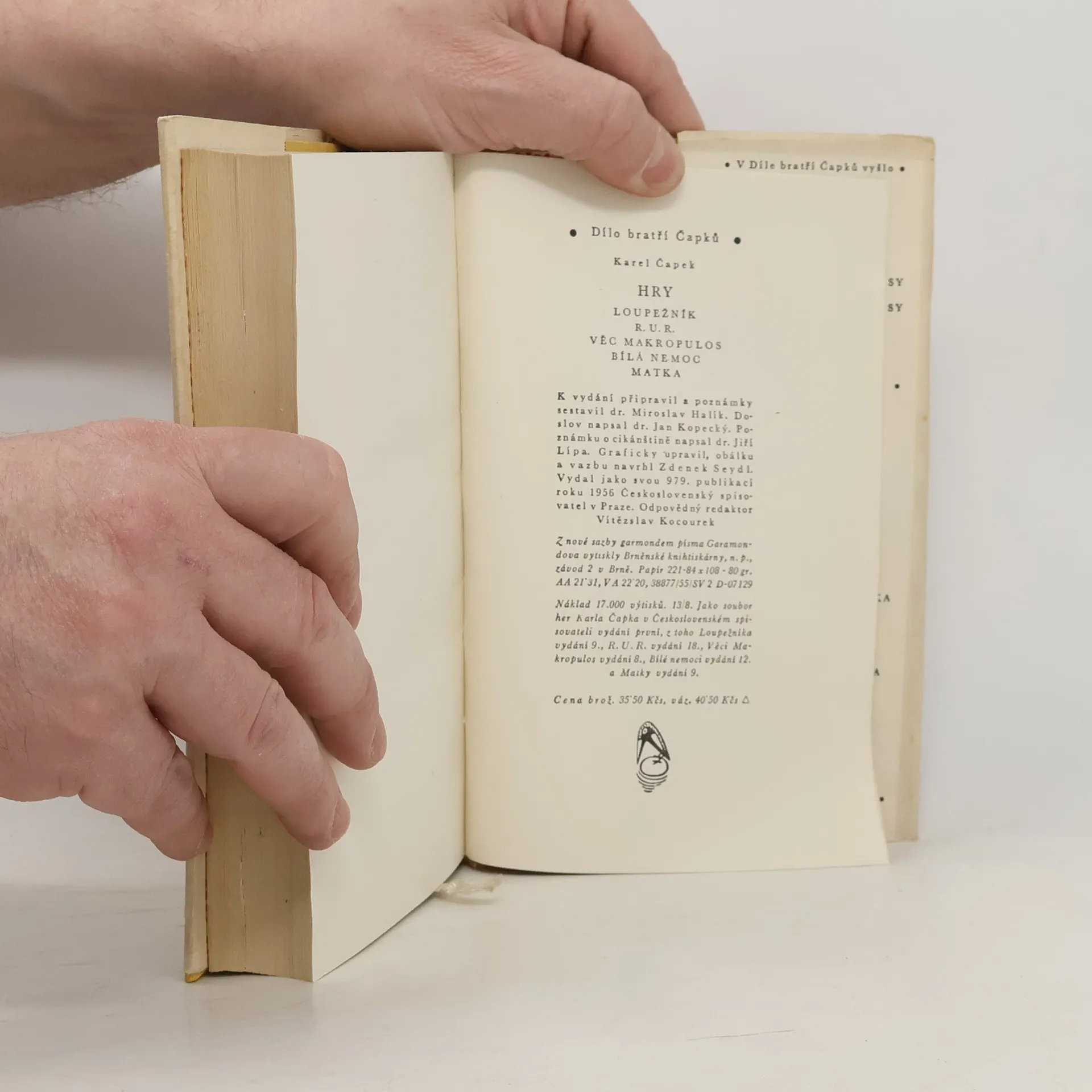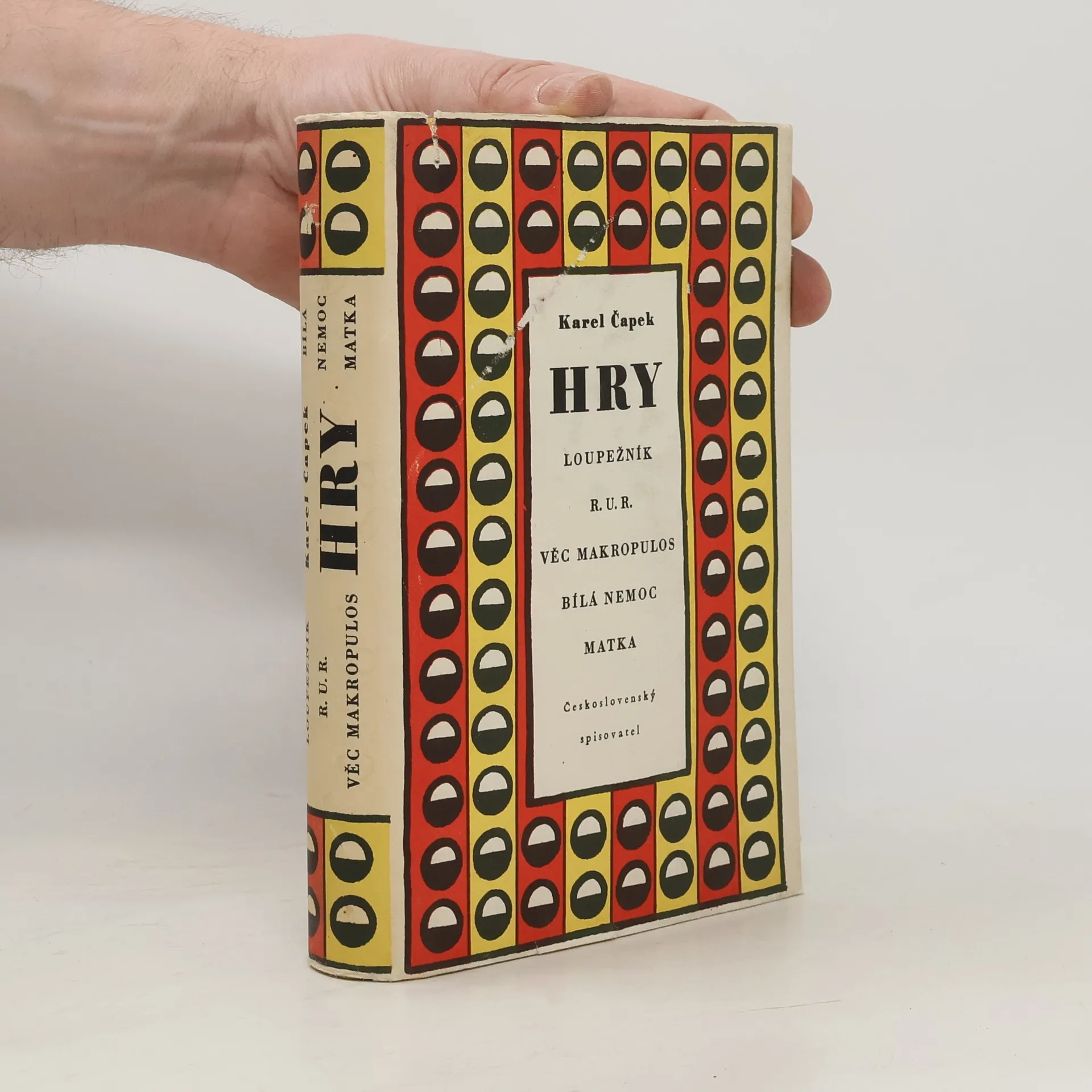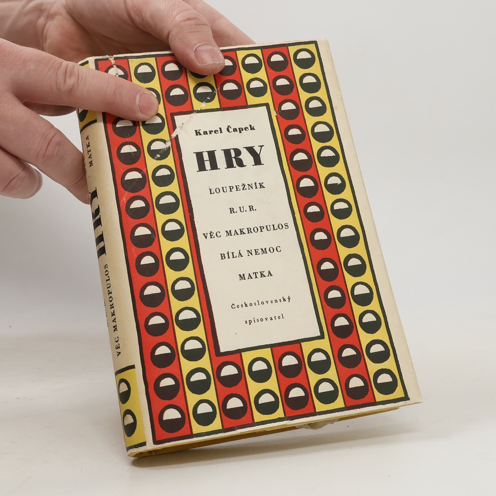 První vydání souboru her od Karla Čapka, který obsahuje hry: Loupežník, R. U. R., Věc Makropulos, Bílá nemoc a Matka.
