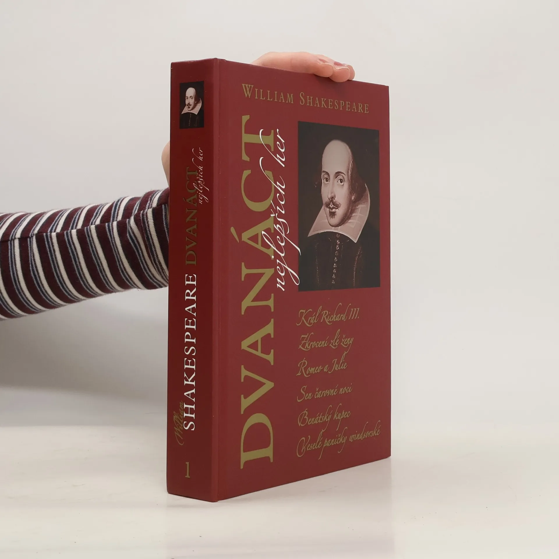 První svazek obsahuje šest her: Král Richard III., Zkrocení zlé ženy, Romeo a Julie, Sen čarovné noci, Benátský kupec, Veselé paničky windsorské.