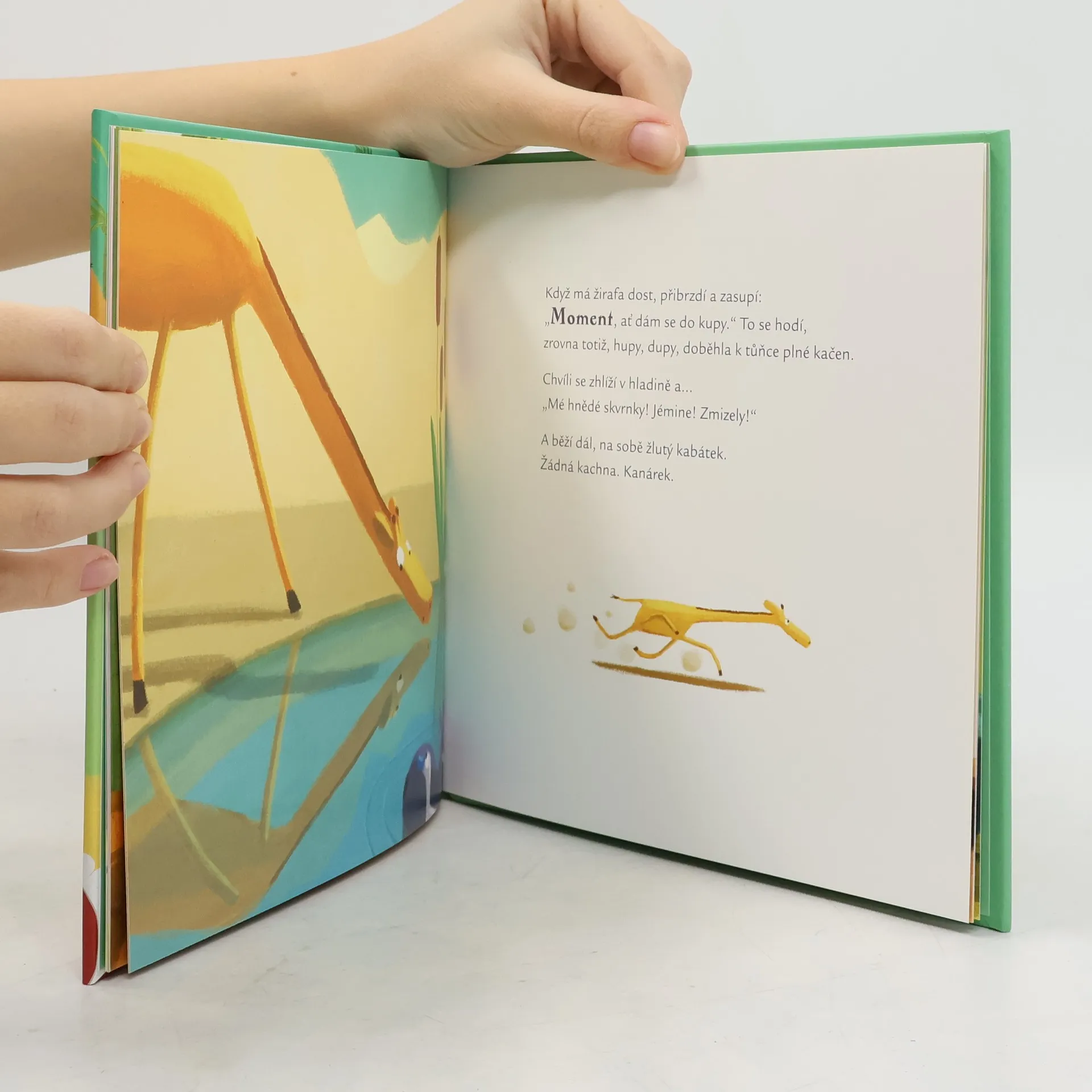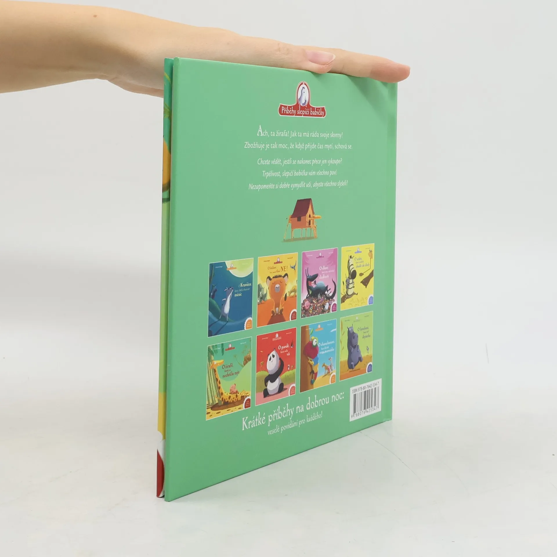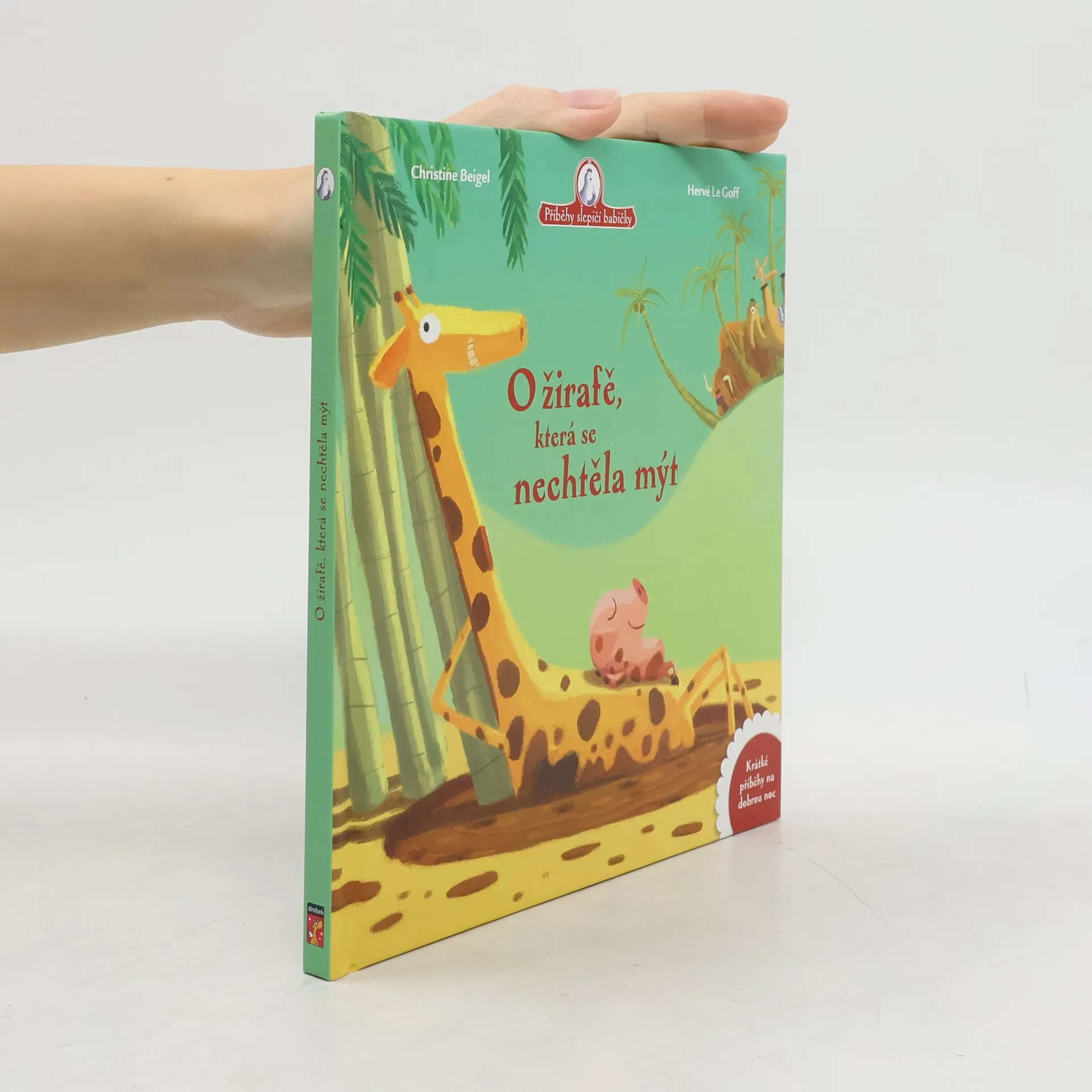 Podívejte, žirafa! Jak ta má ráda svoje skvrny! Zbožňuje je tak moc, že když přijde čas mytí, schová se. Chcete vědět, jestli se nakonec přece jen vykoupe? Trpělivost, slepičí babička vám všechno poví. Nezapomeňte si dobře vymydlit uši, abyste všechno slyšeli!