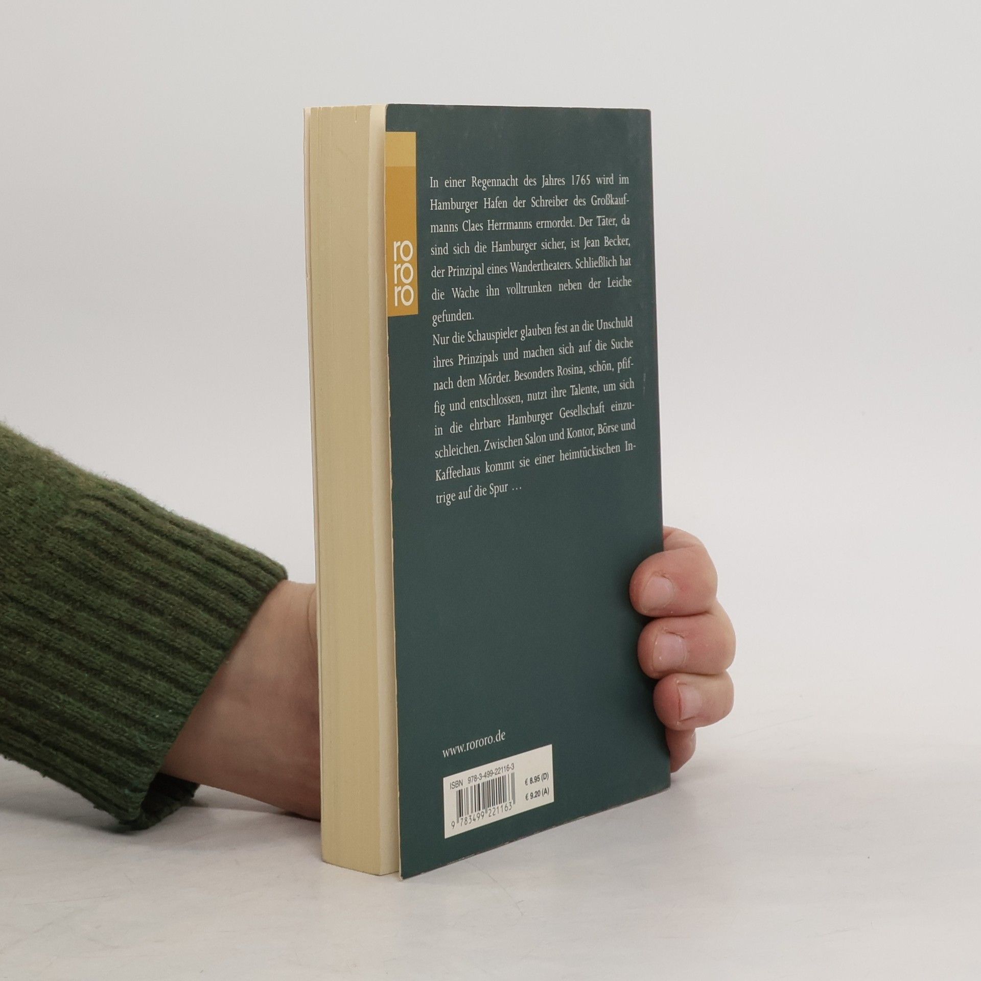 In einer Regennacht des Jahres 1765 wird im Hamburger Hafen der Schreiber des Großkaufmanns Claes Herrmanns ermordet. Der Täter, da sind sich die Hamburger sicher, ist Jean Becker, der Prinzipal eines Wandertheaters. Schließlich hat die Wache ihn volltrunken neben der Leiche gefunden. Nur die Schauspieler glauben fest an die Unschuld ihres Prinzipals und machen sich auf die Suche nach dem Mörder. Besonders Rosina, schön, pfiffig und entschlossen, nutzt ihre Talente, um sich in die ehrbare Hamburger Gesellschaft einzuschleichen. Zwischen Salon und Kontor, Börse und Kaffeehaus kommt sie einer heimtückischen Intrige auf die Spur ... Rosinas erster Fall