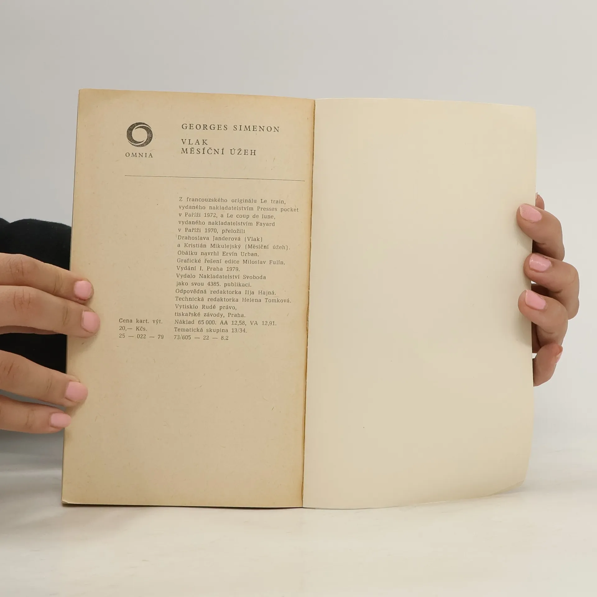 Dvě z psychologických Simenonových novel, vyprávějí příběhy odehrávající se v navzájem odlišné situaci, době i prostředí. Hlavní hrdinové jsou si však čímsi podobní: oba zakřiknutí, nejistí a zcela průměrní mladí muži, vláčení událostmi, pokoušejí se překonat sami sebe. Každý jinak a každý s jiným výsledkem. Edice Omnia, 1. vydání.