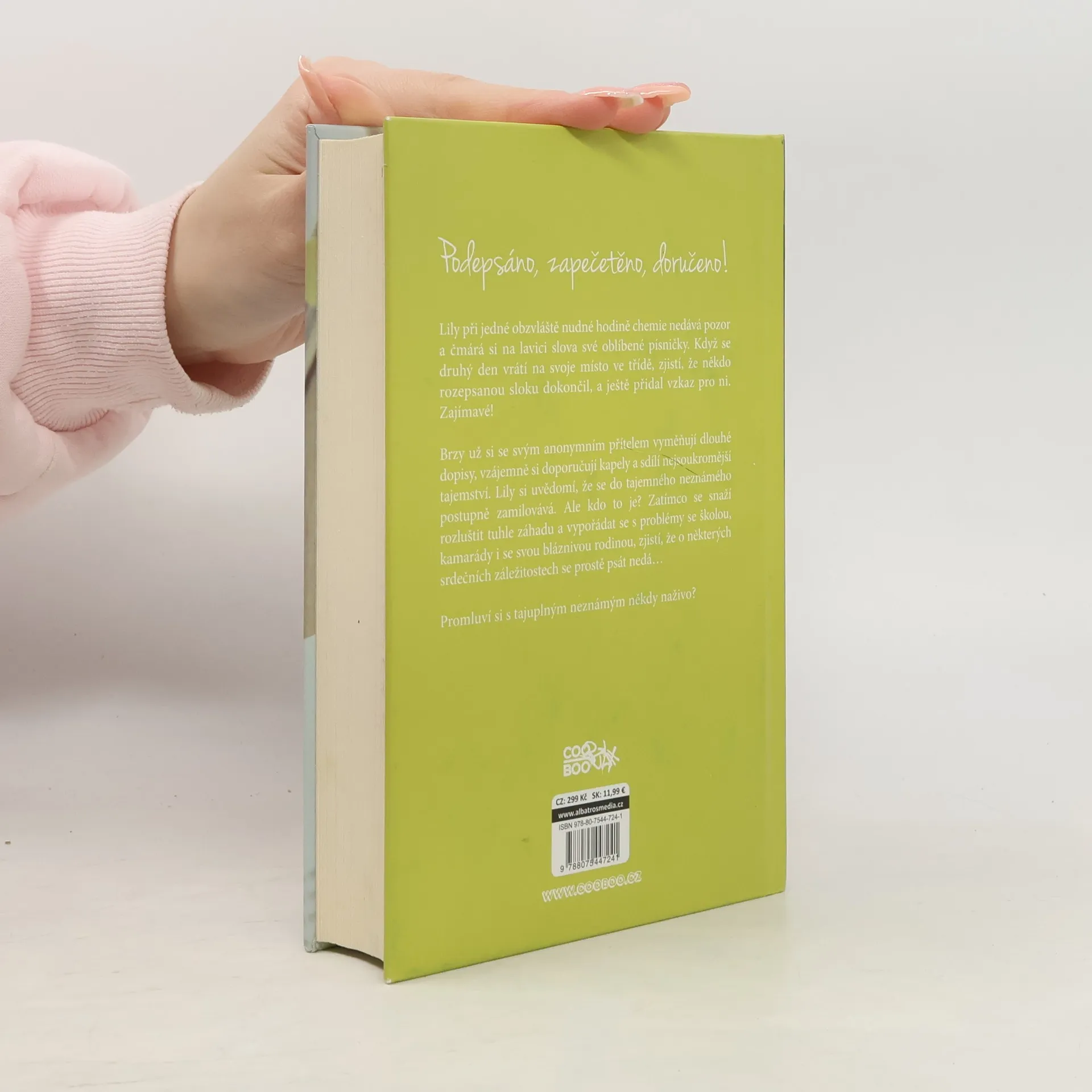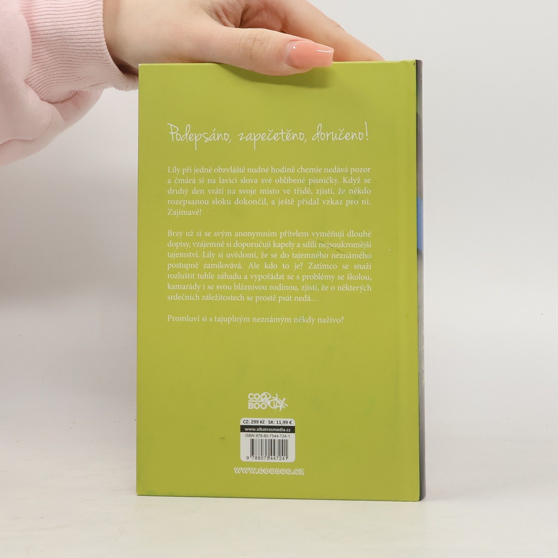 Podepsáno, zapečetěno, doručeno! Další romantická kniha od oblíbené Kasie Westové. Lily při jedné obzvláště nudné hodině chemie nedává pozor a čmárá si na lavici slova oblíbené písničky. Druhý den zjistí, že někdo rozepsanou sloku dokončil, a ještě přidal vzkaz pro ni. Zajímavé! Brzy už si se svým anonymním přítelem vyměňují dlouhé dopisy, doporučují si vzájemně kapely a sdílí ta nejsoukromější tajemství. A to je teprve začátek dopisového přátelství, které se postupně promění v něco víc. Promluví si s tajuplným neznámým někdy naživo?