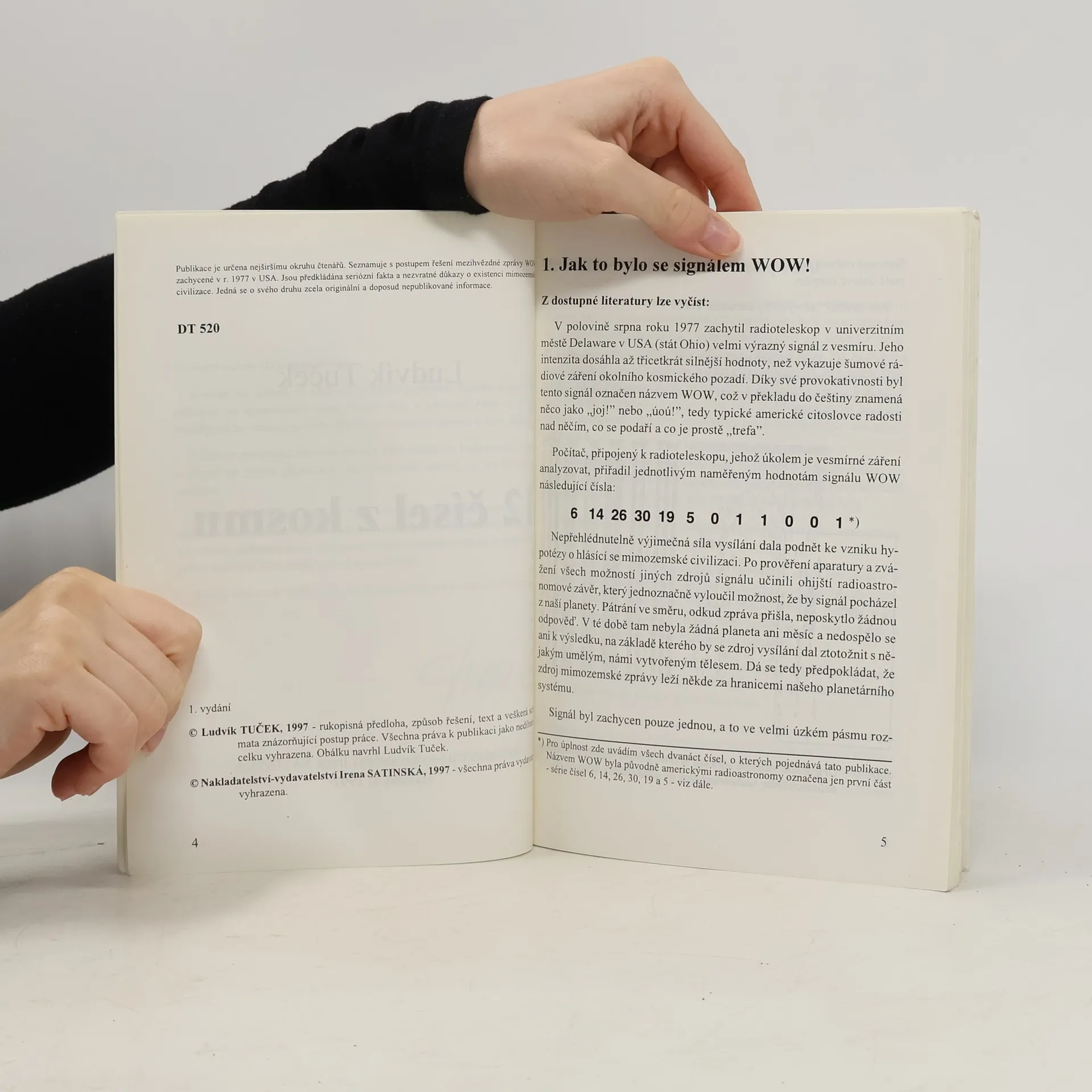 Úspěšné vyřešení mezihvězdné radiové zprávy mimozemšťanů, nazvané WOW, přijaté 15. srpna 1977 delawarským radioteleskopem v Ohiu - USA.