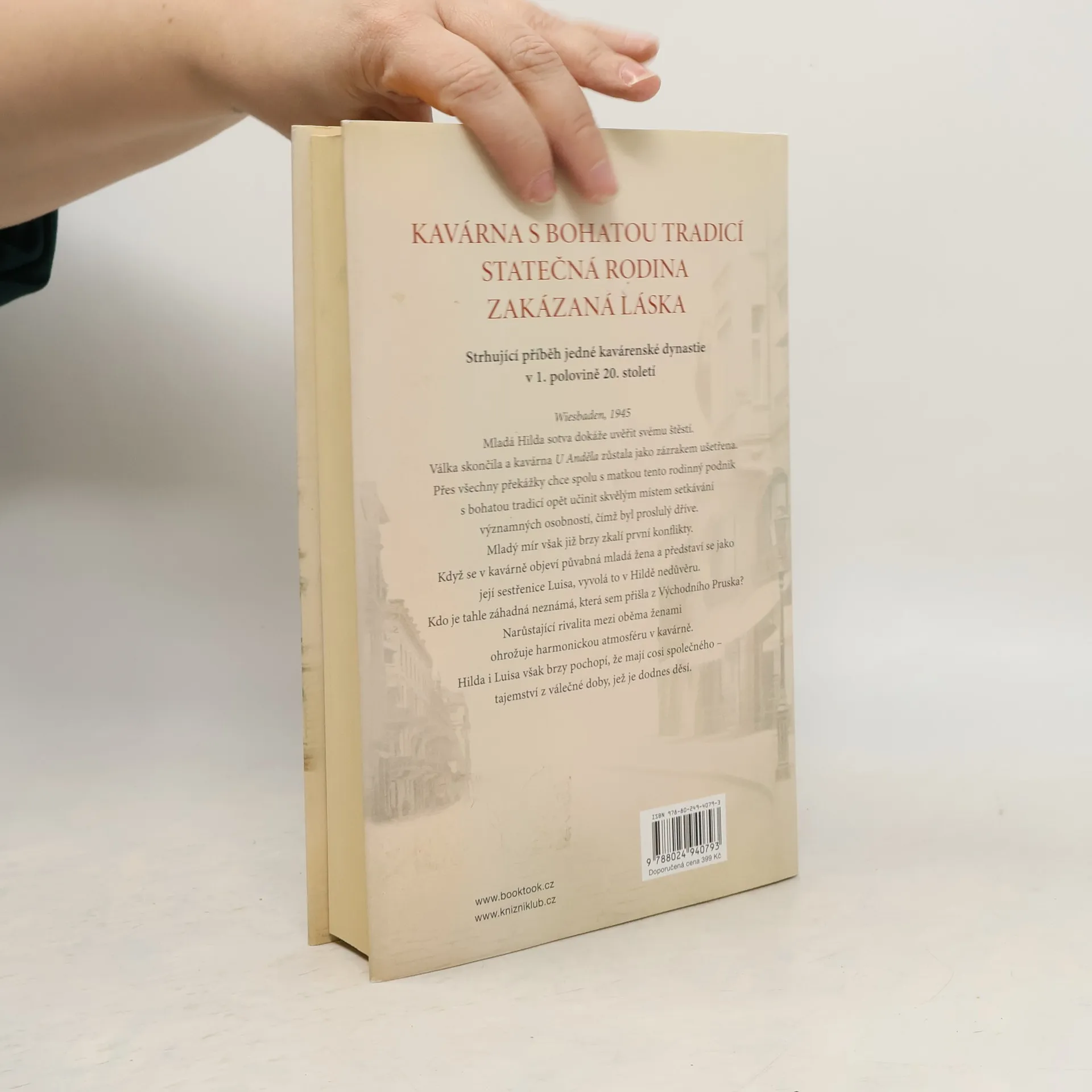 Strhující příběh jedné kavárenské dynastie na přelomu 20. století Wiesbaden, 1945 Mladá Hilda sotva dokáže uvěřit svému štěstí. Válka skončila a kavárna U Anděla zůstala jako zázrakem ušetřena. Přes všechny překážky chce tento rodinný podnik s bohatou tradicí opět učinit skvělým místem setkávání významných osobností, čímž byl proslulý dříve. Mladý mír však již brzy zkalí první konflikty. Když přijde do kavárny půvabná mladá žena a představí se jako její sestřenice Luisa, vyvolá to v Hildě nedůvěru. Kdo je tahle záhadná Luisa, která se z Východního Pruska dostala až do Wiesbadenu? Narůstající rivalita mezi oběma ženami ohrožuje harmonickou atmosféru v kavárně. Dokud Hilda i Luisa nakonec nepochopí, že mají cosi společného – tajemství z válečné doby, jež je dodnes děsí.