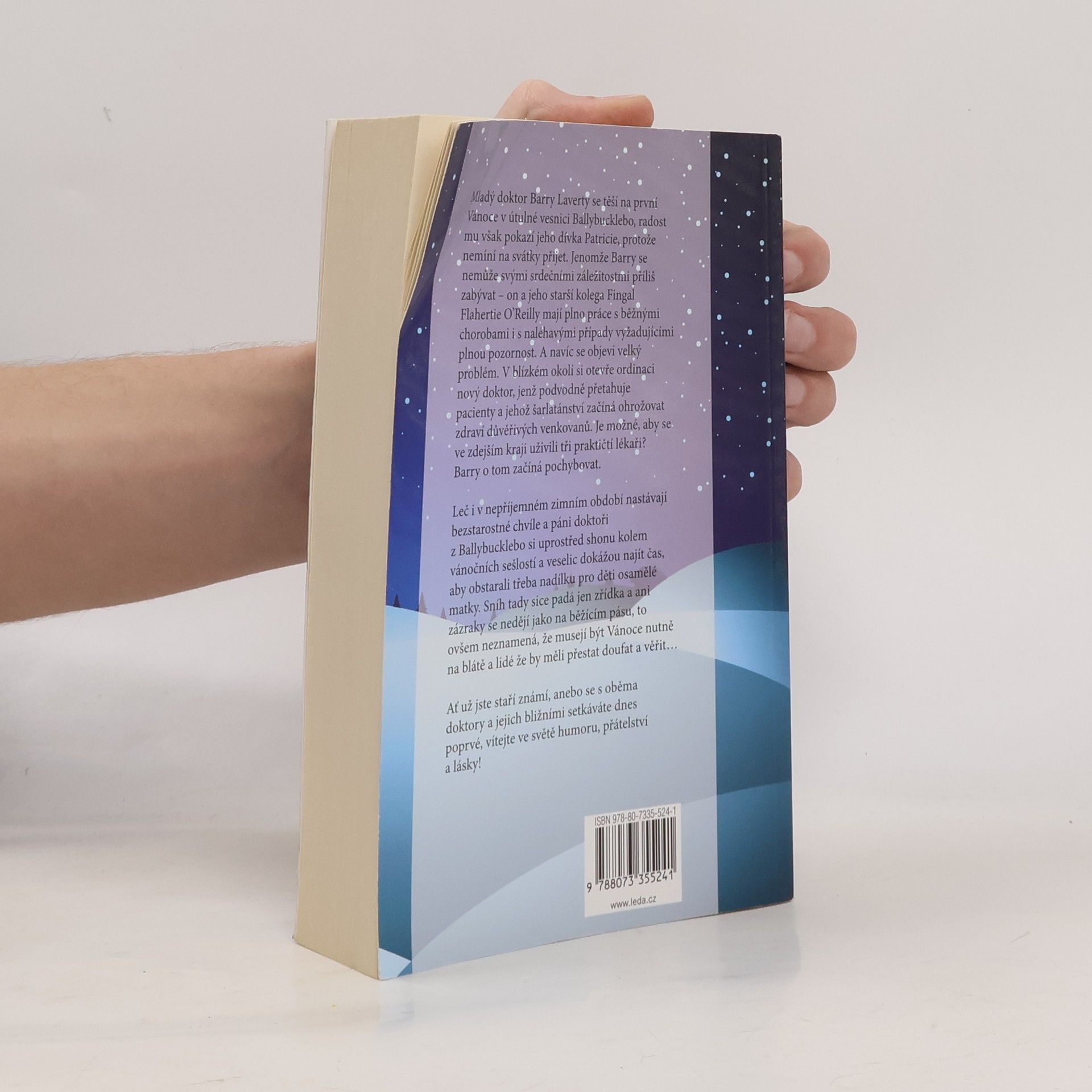 Mladý doktor Barry Laverty se těší na první Vánoce v útulné vesnici Ballybucklebo, radost mu však pokazí jeho dívka Patricie, protože nemíní na svátky přijet. Jenomže Barry se nemůže svými srdečními záležitostmi příliš zabývat on a jeho starší kolega Fingal Flahertie OReilly mají plno práce s běžnými chorobami i s naléhavými případy vyžadujícími plnou pozornost. A navíc se objeví velký problém. V blízkém okolí si otevře ordinaci nový doktor, jenž podvodně přetahuje pacienty a jehož šarlatánství začíná ohrožovat zdraví důvěřivých venkovanů. Je možné, aby se ve zdejším kraji uživili tři praktičtí lékaři? Barry o tom začíná pochybovat. Leč i v nepříjemném zimním období nastávají bezstarostné chvíle a páni doktoři z Ballybucklebo si uprostřed shonu kolem vánočních sešlostí a veselic dokážou najít čas, aby obstarali třeba nadílku pro děti osamělé matky. Sníh tady sice padá jen zřídka a ani zázraky se nedějí jako na běžícím pásu, to ovšem neznamená, že musejí být Vánoce nutně na blátě a lidé že by měli přestat doufat a věřit Ať už jste staří známí, anebo se s oběma doktory a jejich bližními setkáváte dnes poprvé, vítejte do světa humoru, přátelství a lásky!
